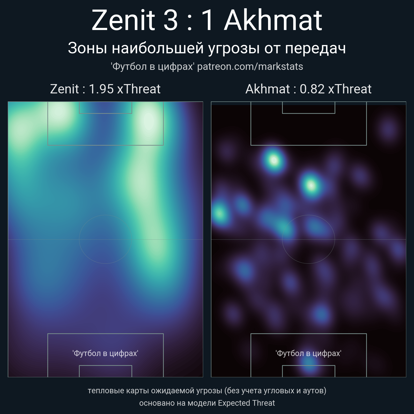 ▪ xThreat без учета угловых: 1.95 - 0.82