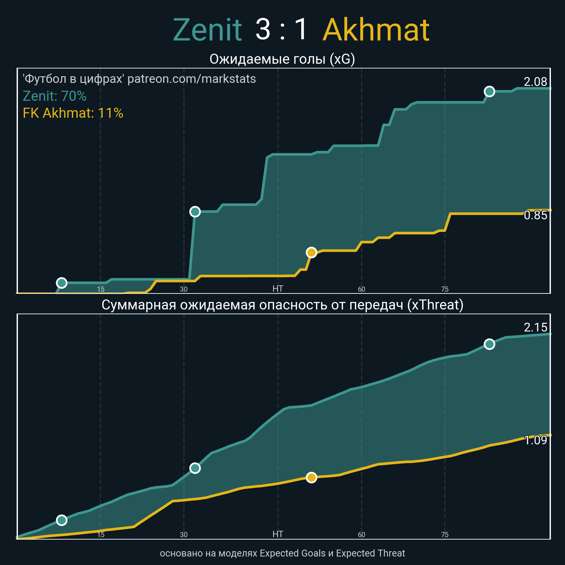 Футбол в цифрахСтатистика матча Zenit - FK Akhmat
