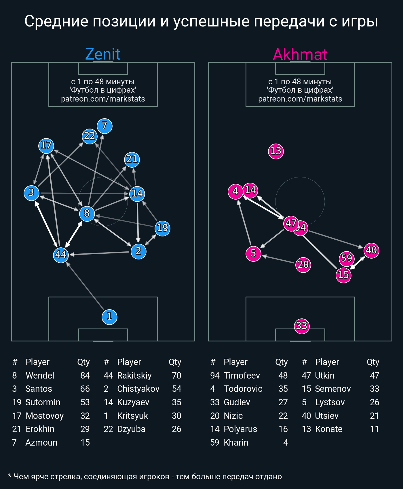 ▪ 74 успешных передач из 84 попыток (4 под удар, 11 с продвижением, 13 на трети соперника)