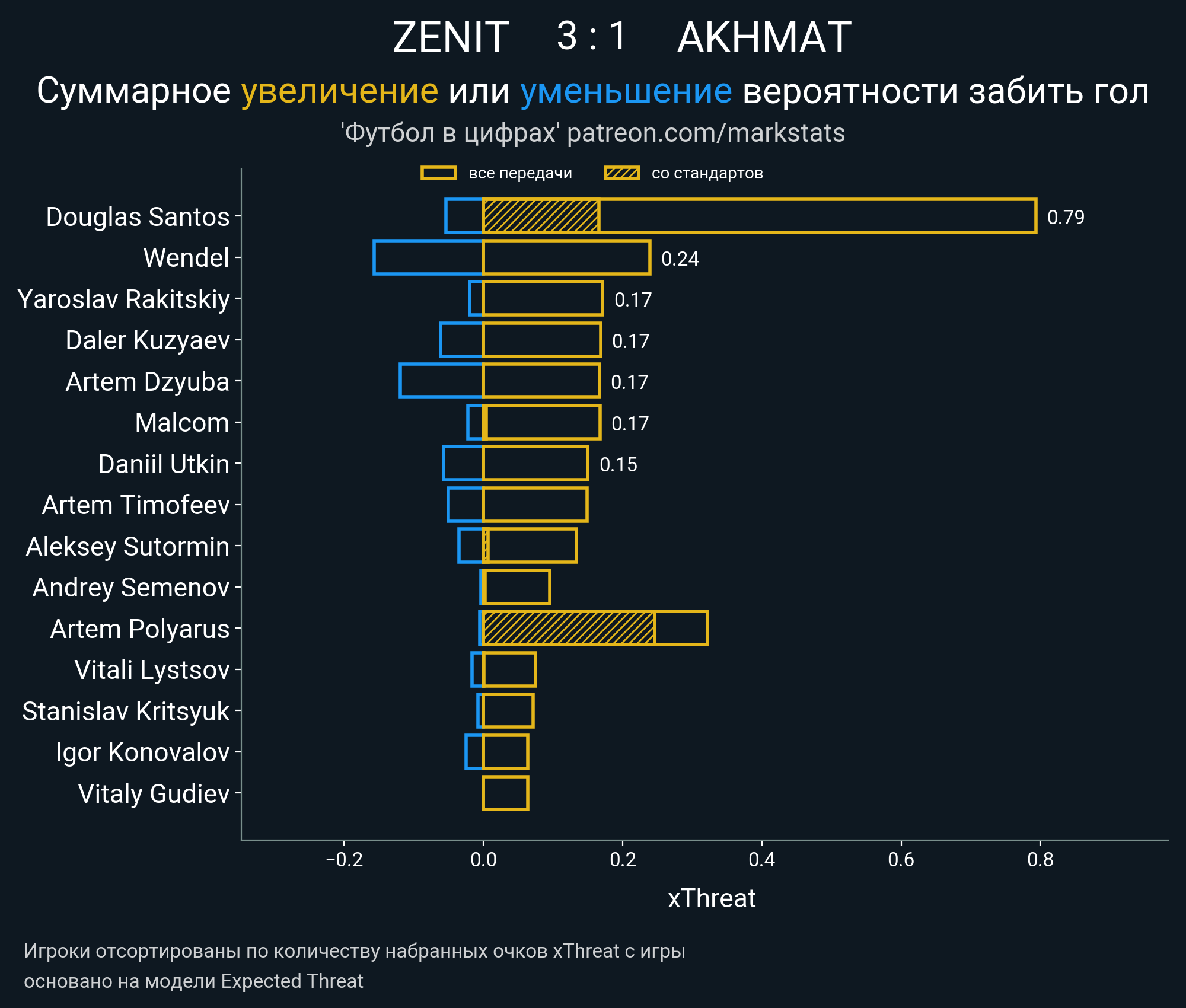 Очки xThreat с игры: