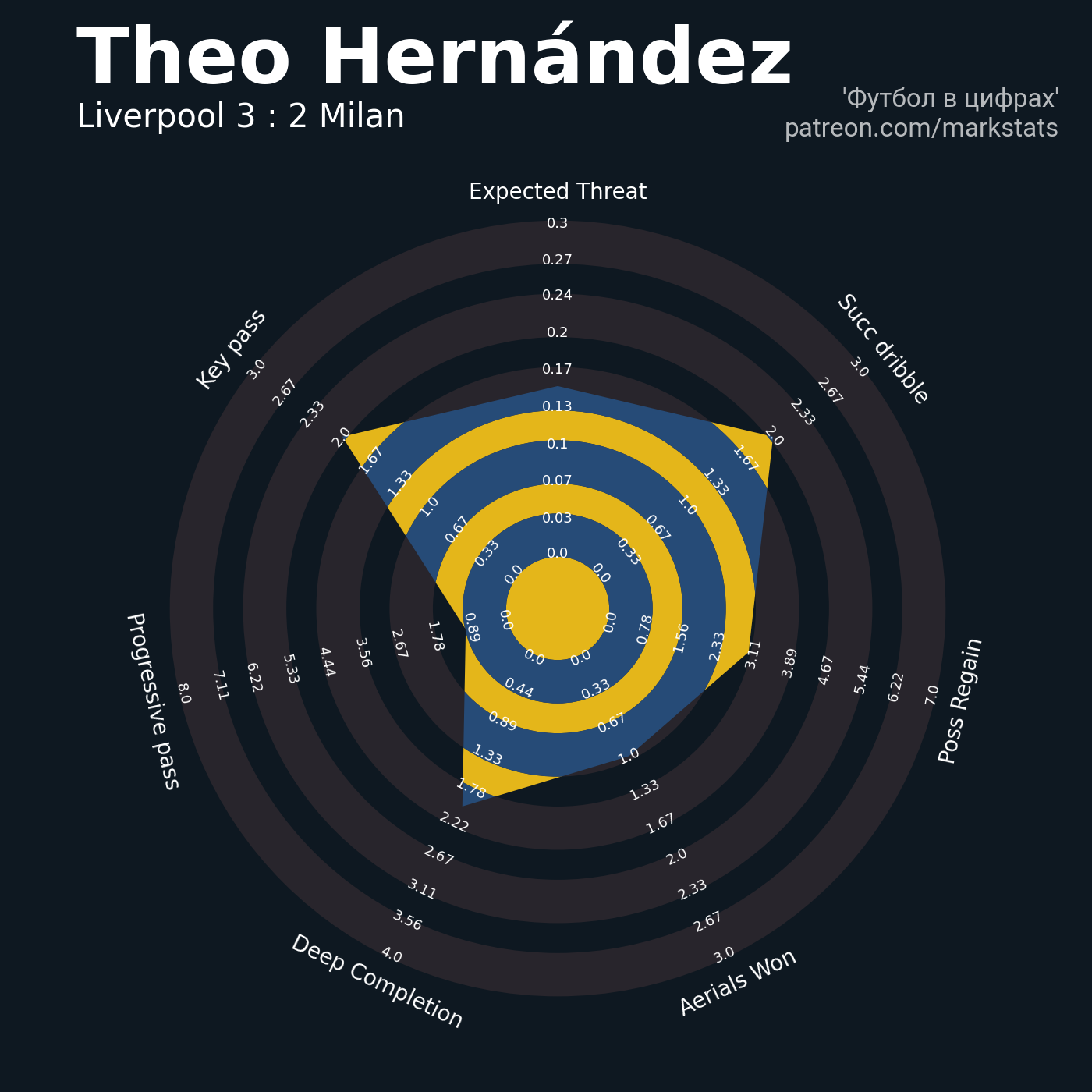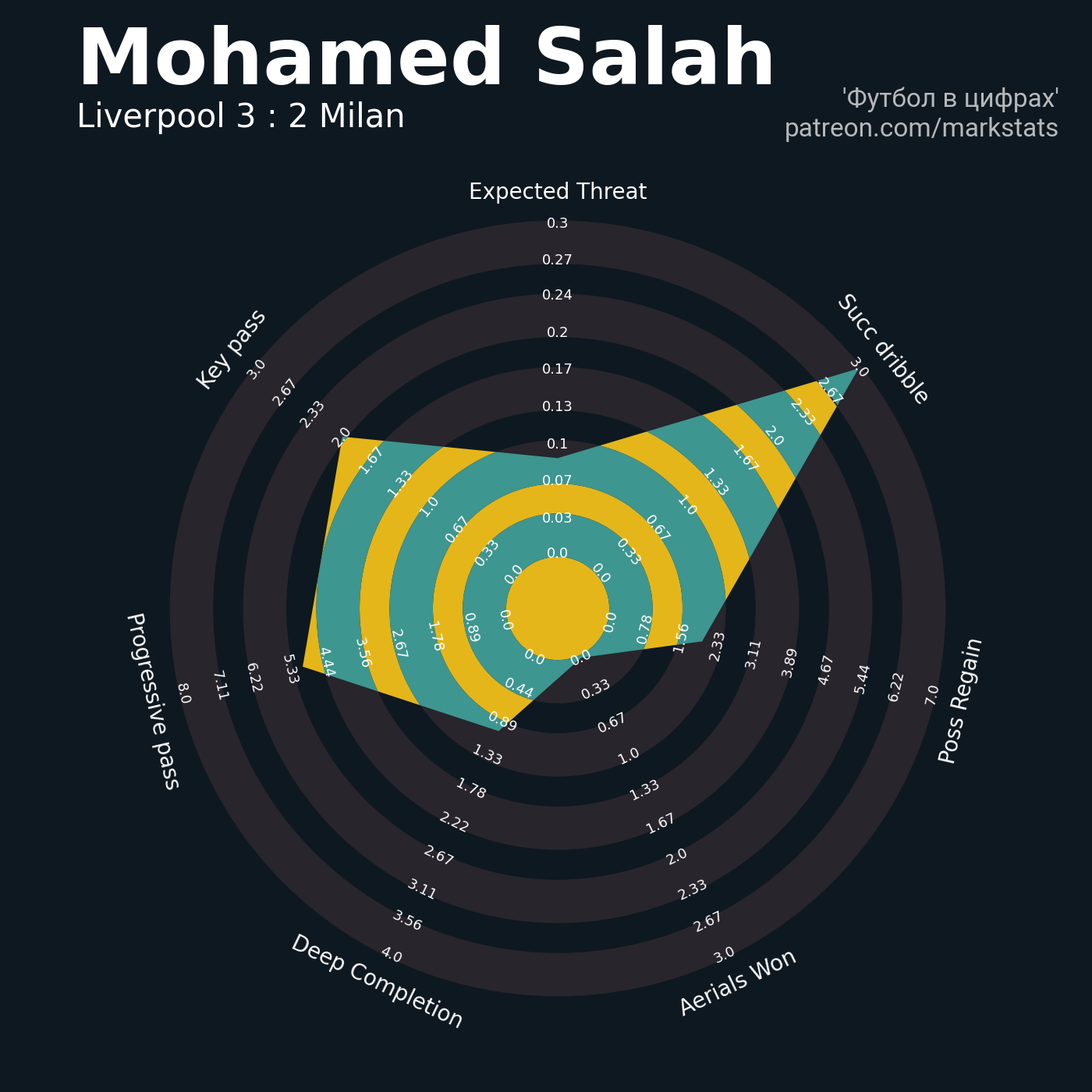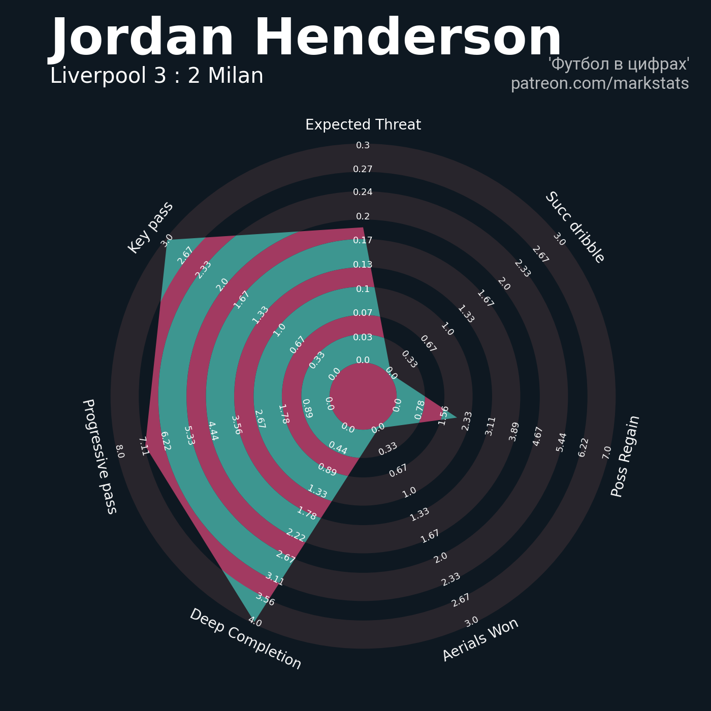 ▪ 0.15 очка xT (+0.07 со стандартов)