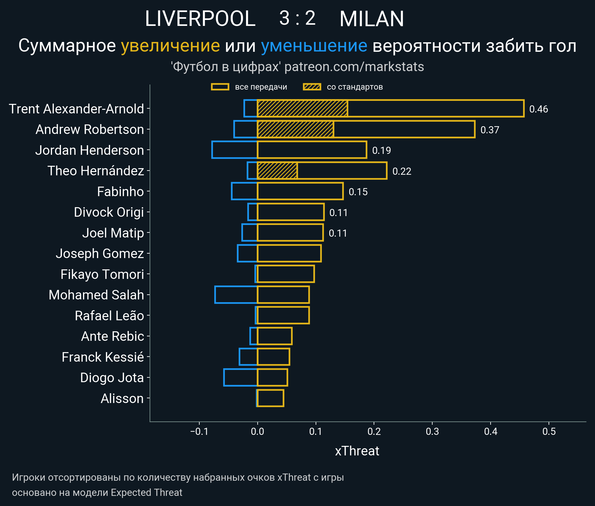 Очки xThreat с игры:
