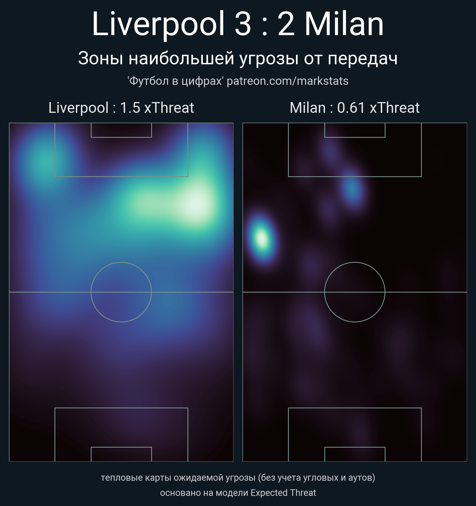 ▪ xThreat без учета угловых: 1.5 - 0.61