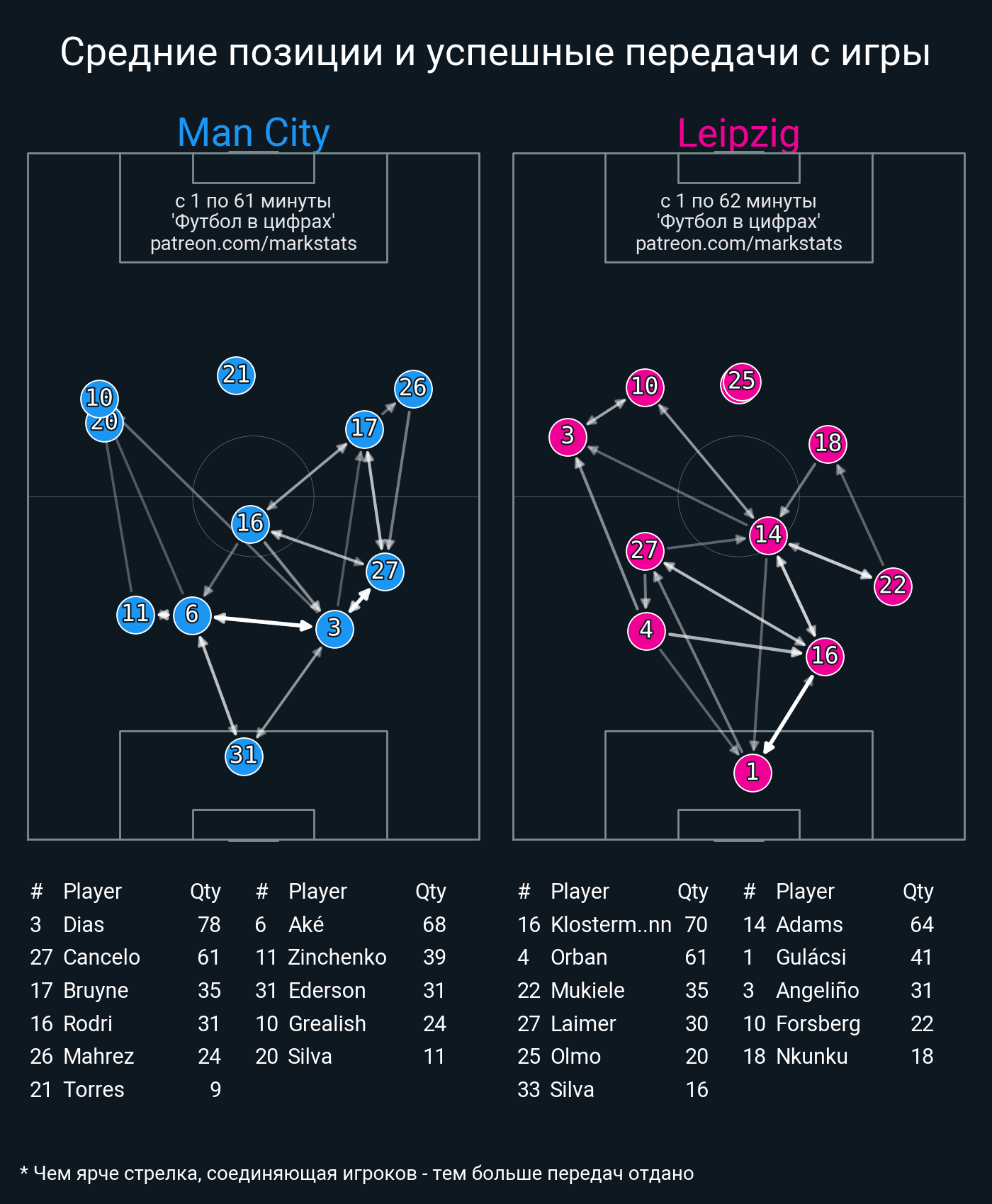 Футбол в цифрахСтатистика матча Man City - RBL