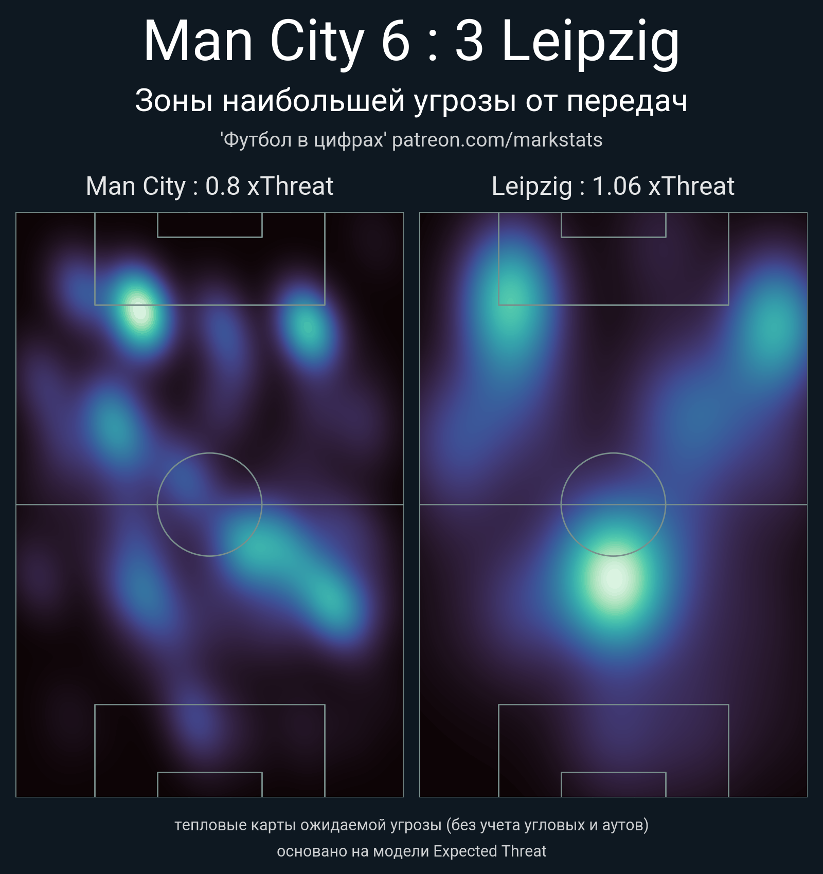 ▪ xThreat без учета угловых: 0.8 - 1.06