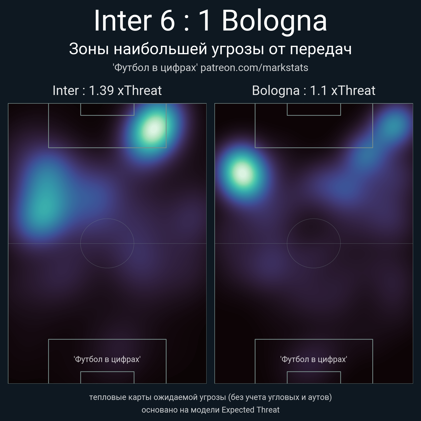 ▪ xThreat без учета угловых: 1.39 - 1.1