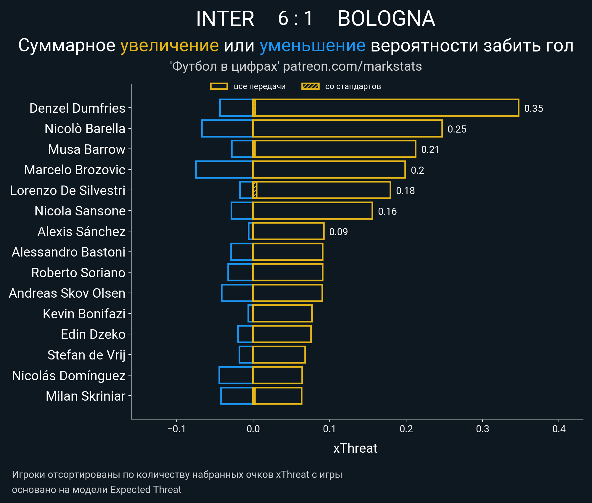 Очки xThreat с игры: