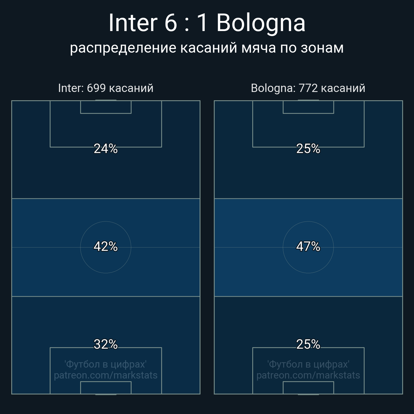 Футбол в цифрахСтатистика матча Inter - Bologna