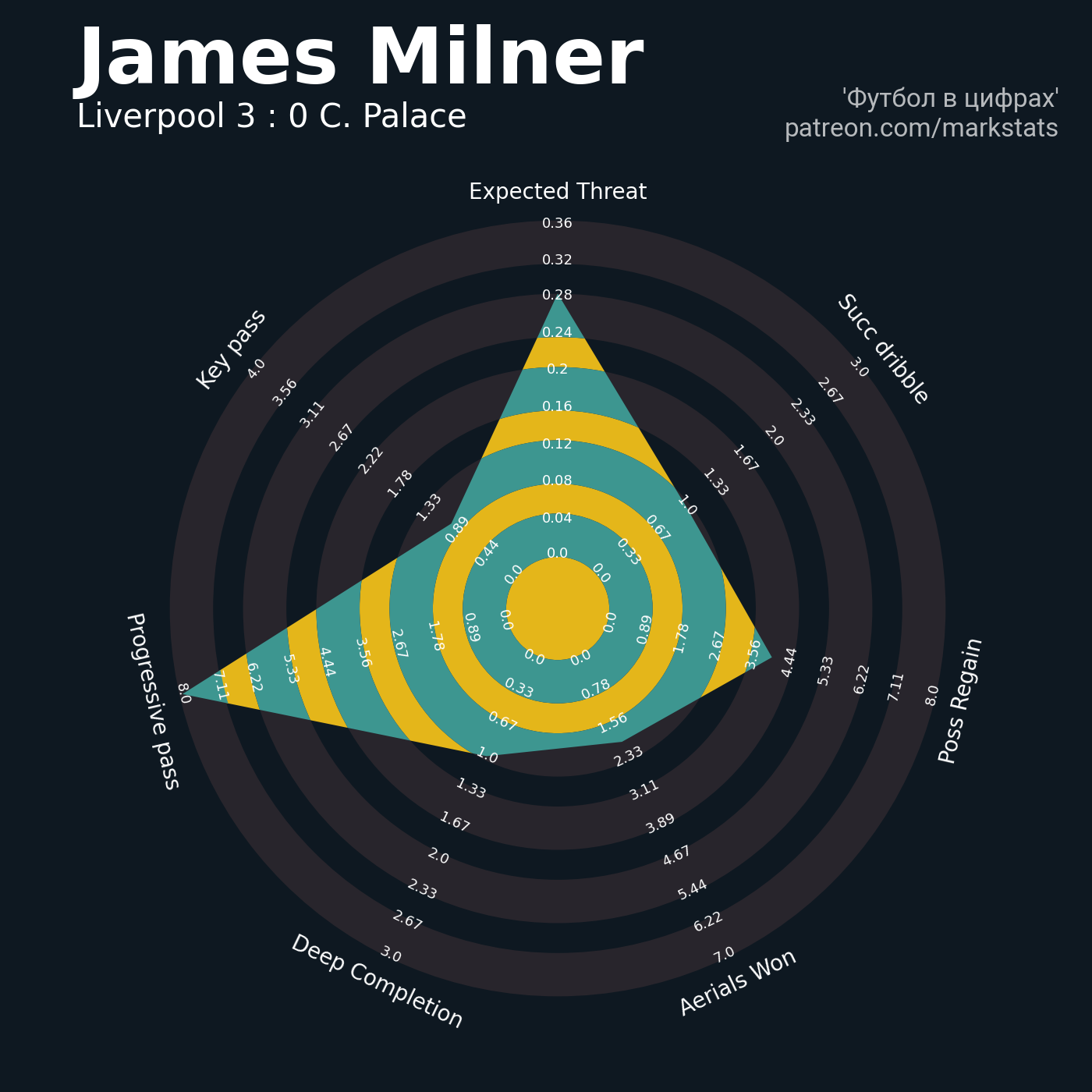 ▪ 0.36 очка xT (+0.26 со стандартов)
