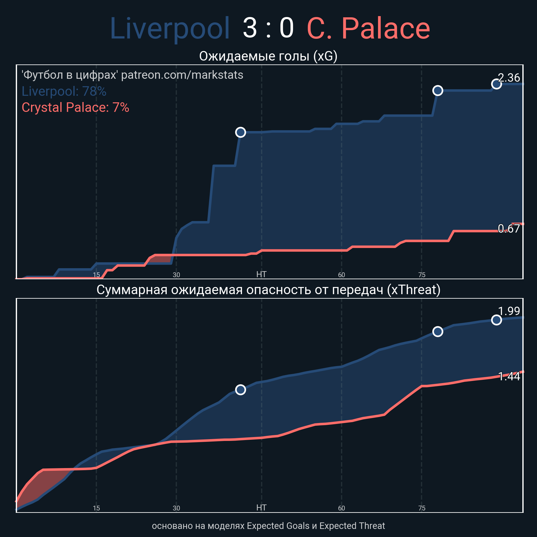 Футбол в цифрахСтатистика матча Liverpool - Crystal Palace