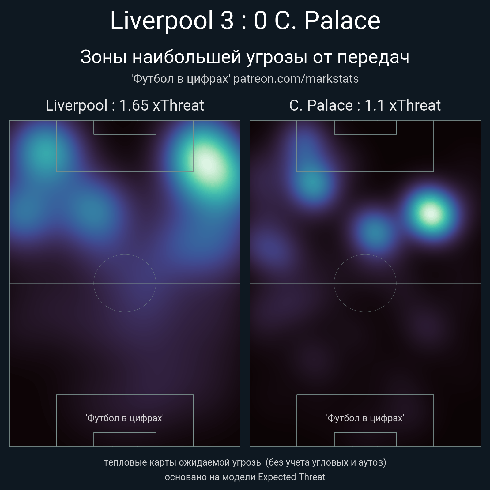 ▪ xThreat без учета угловых: 1.65 - 1.1