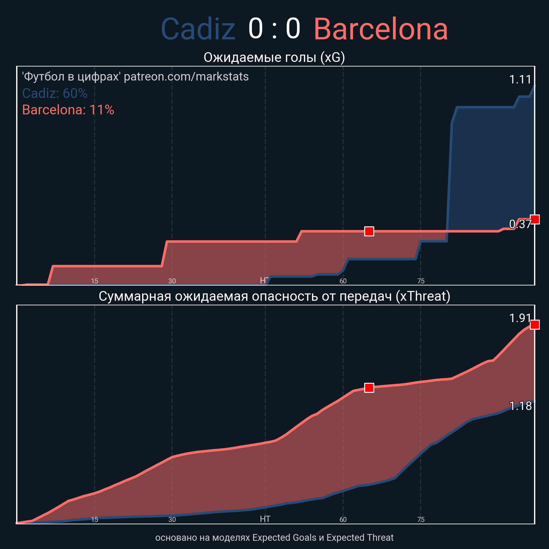 ▪ Ожидаемые голы (NPxG): 1.11 - 0.37