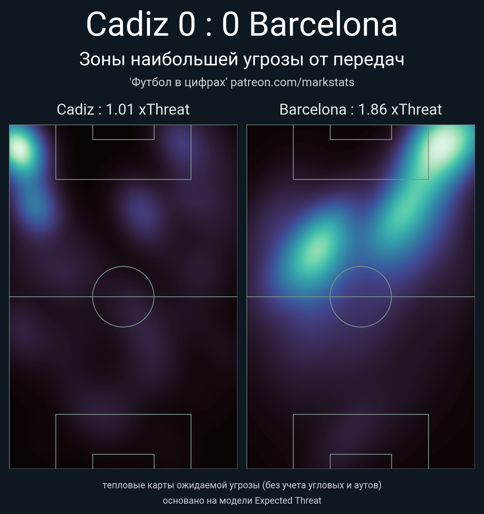 ▪ xThreat без учета угловых: 1.01 - 1.86