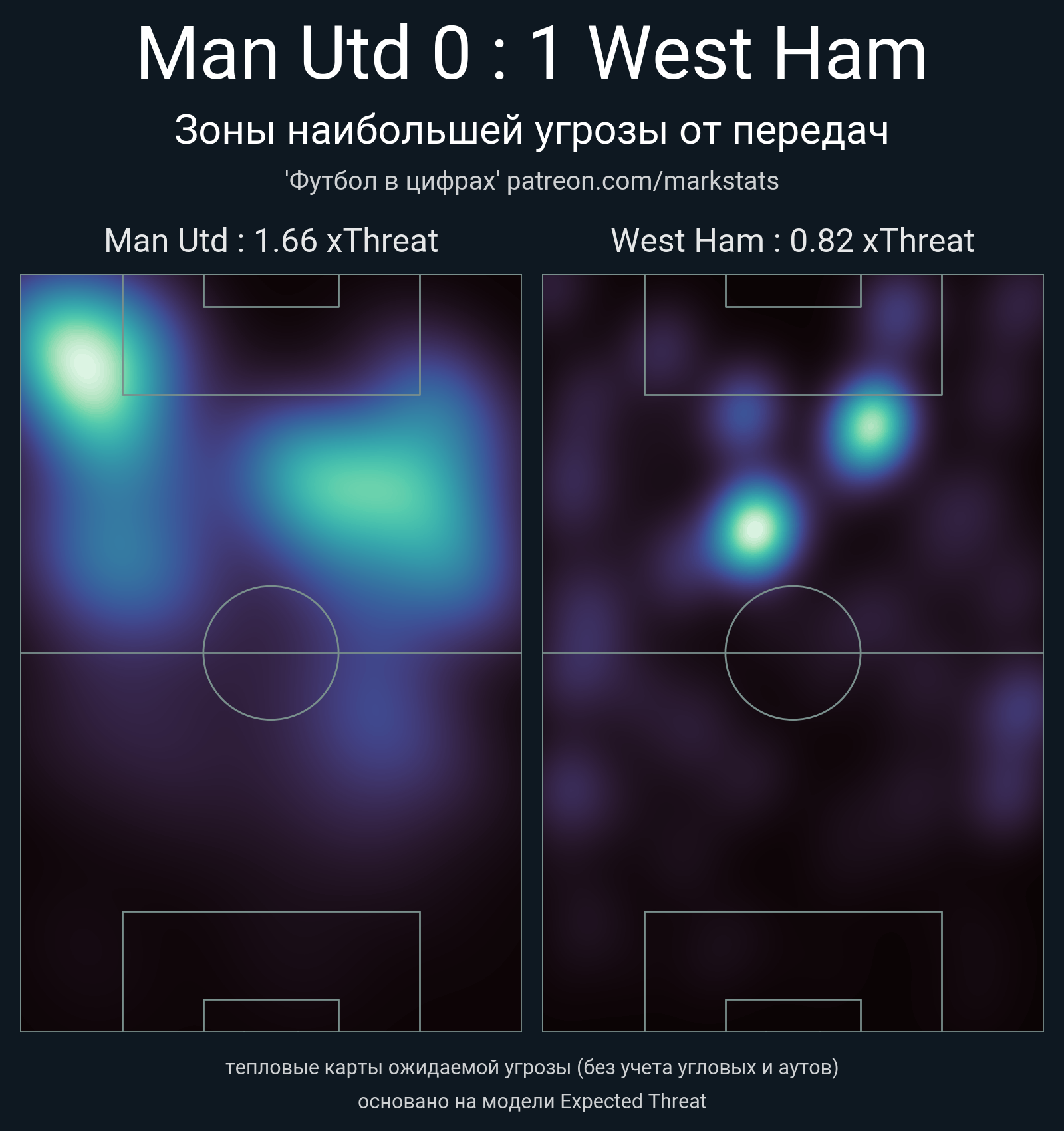 ▪ xThreat без учета угловых: 1.66 - 0.82