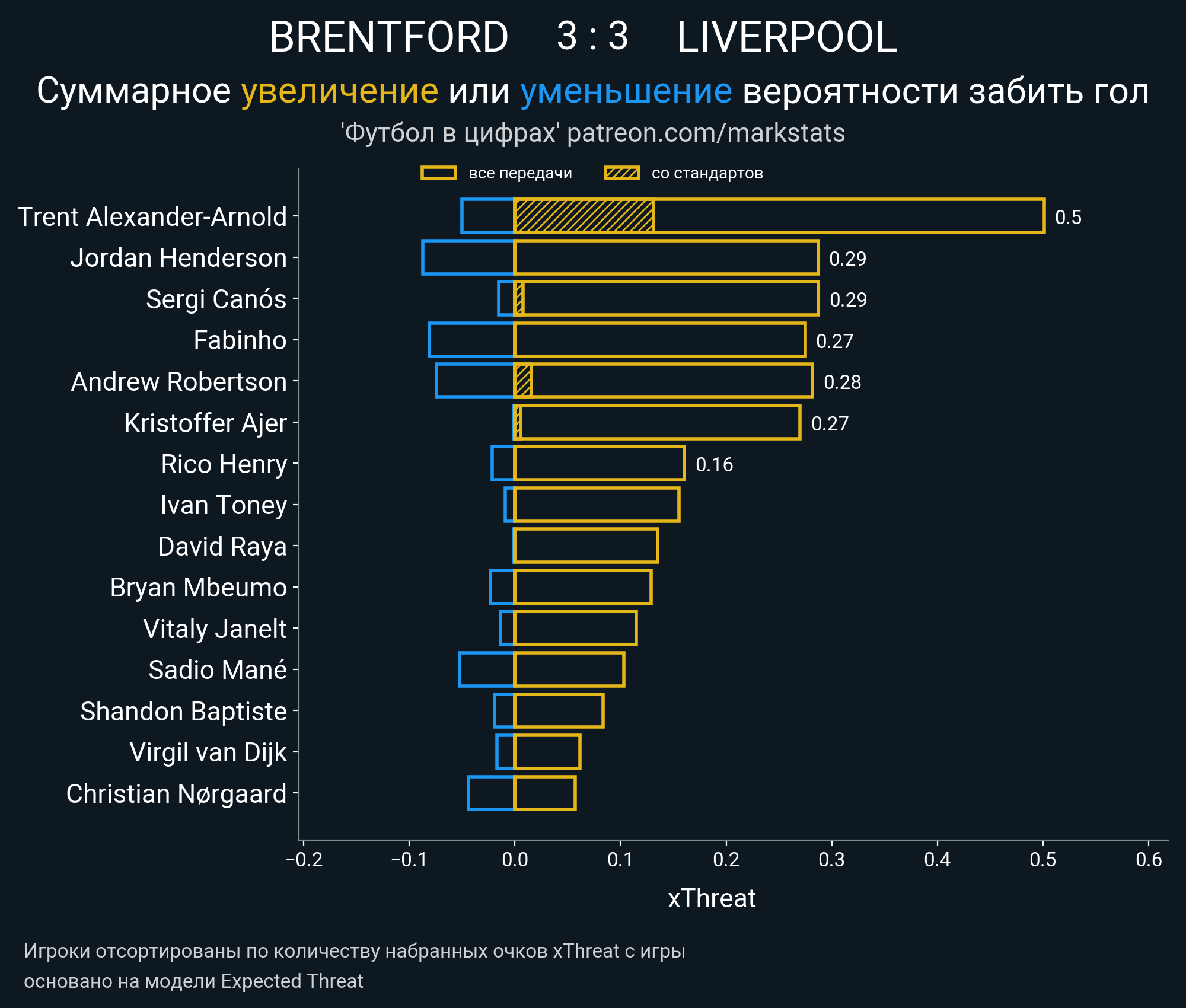 Очки xThreat с игры: