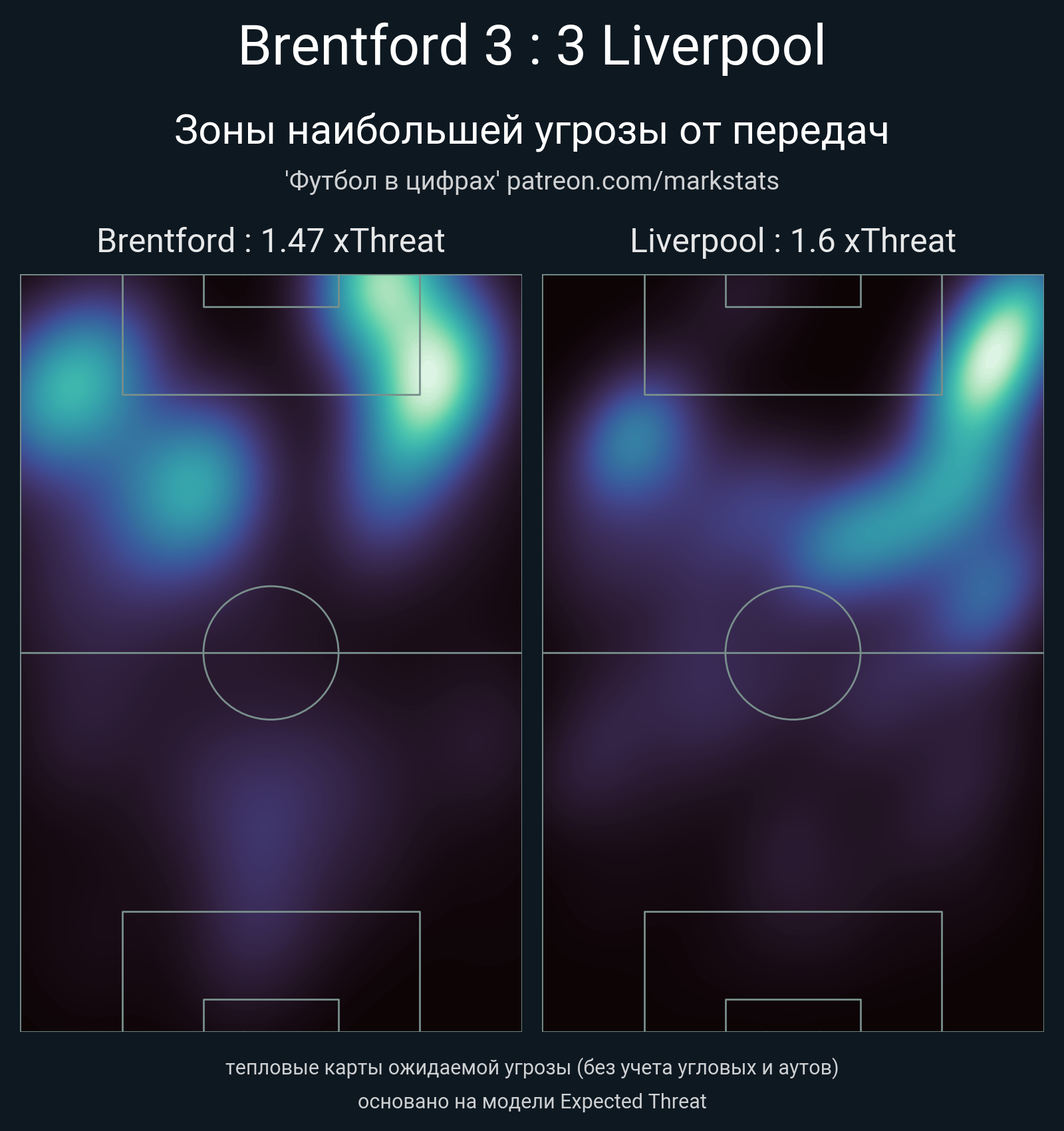 ▪ xThreat без учета угловых: 1.47 - 1.6