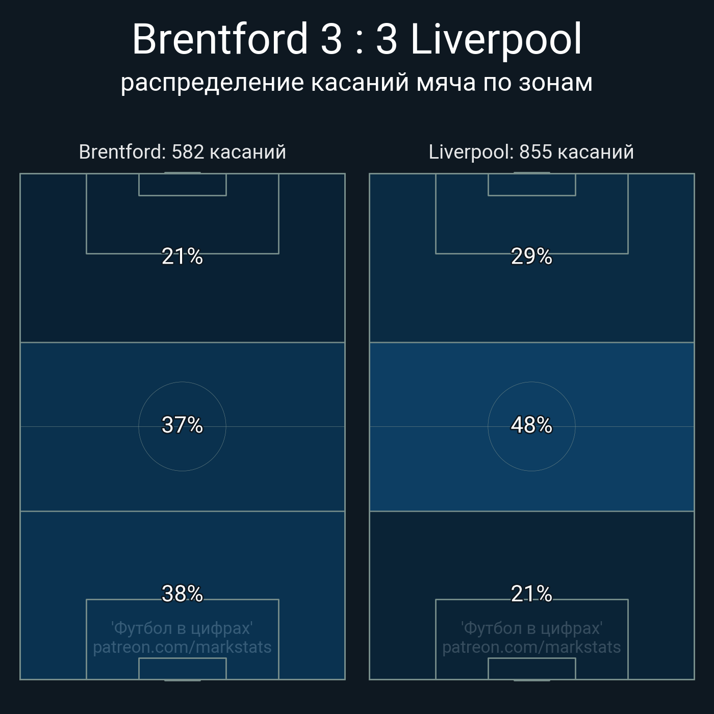 Футбол в цифрахСтатистика матча Brentford - Liverpool