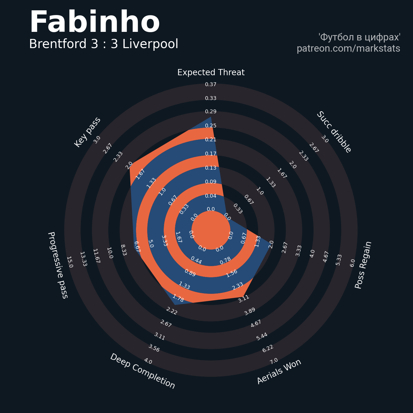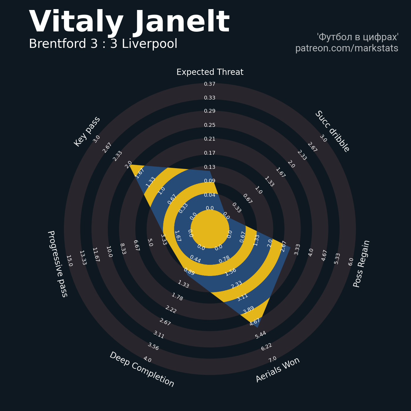 ▪ 0.37 очка xT (+0.13 со стандартов)