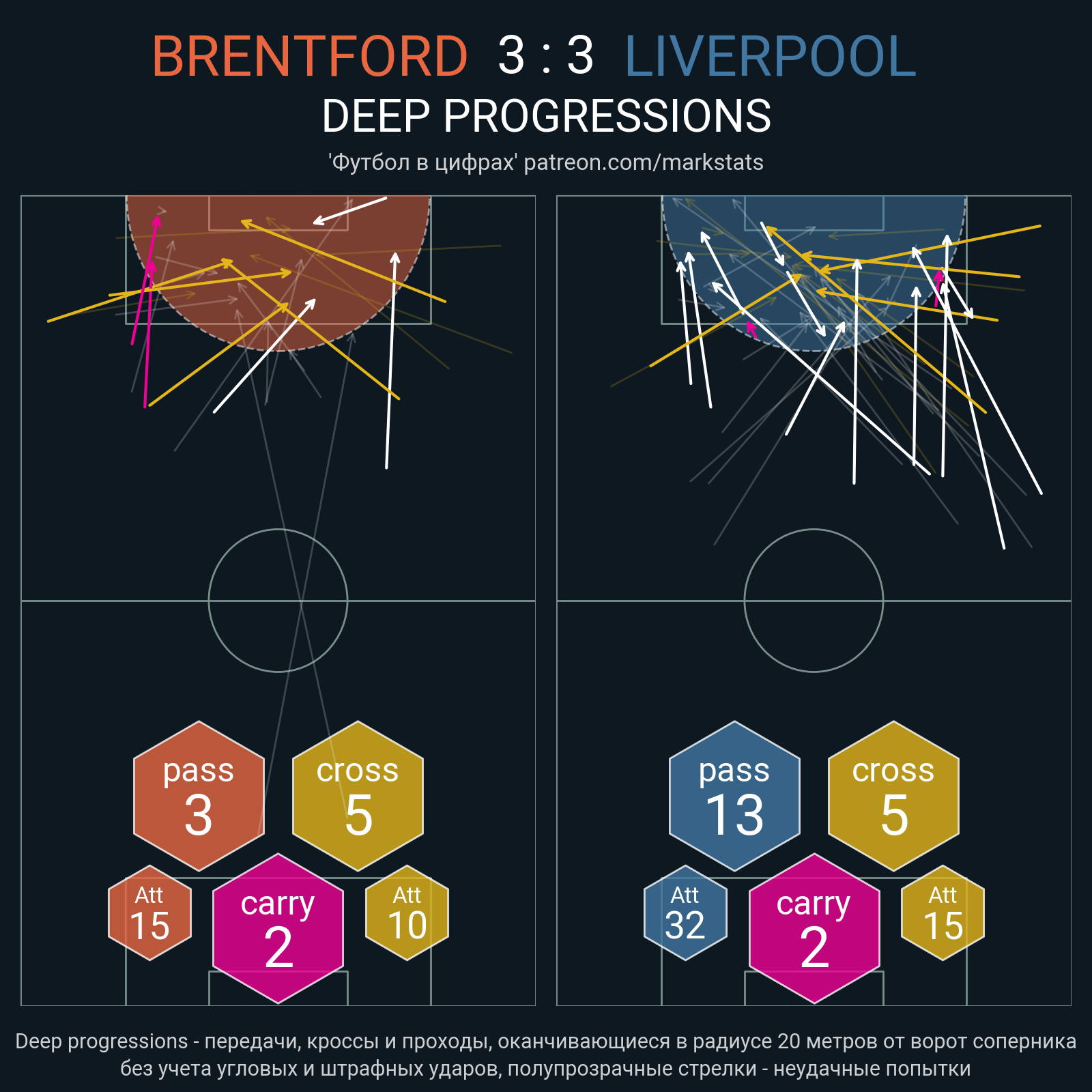 ▪ 23 успешных передач из 35 попыток (2 под удар, 3 с продвижением, 6 на трети соперника)