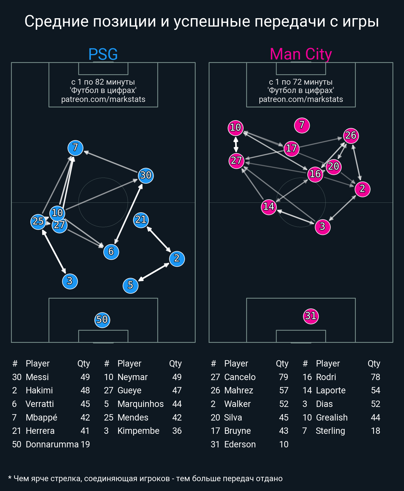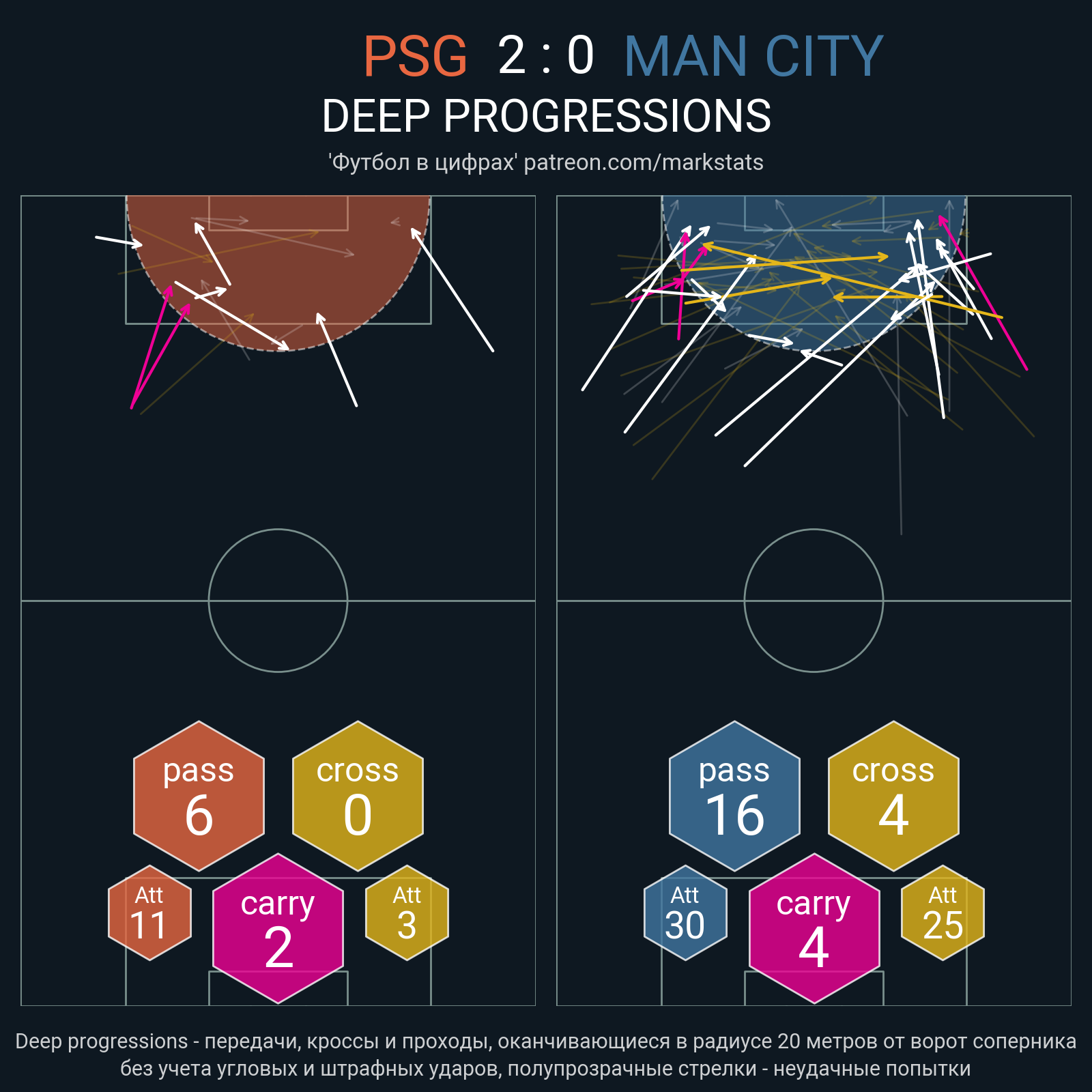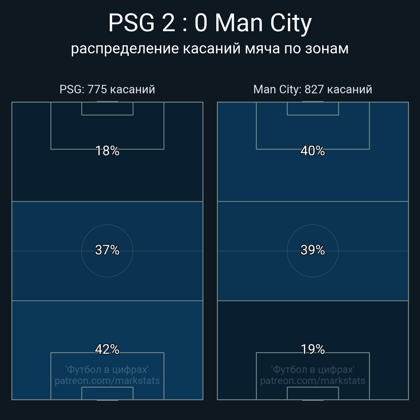Футбол в цифрахСтатистика матча PSG - Man City