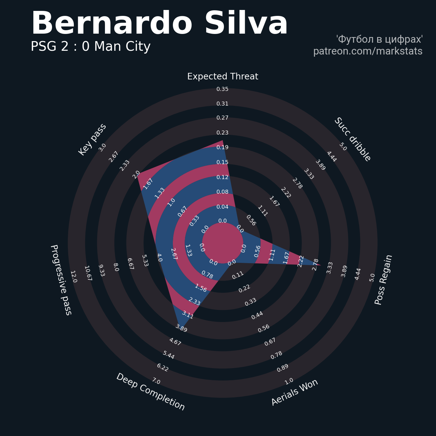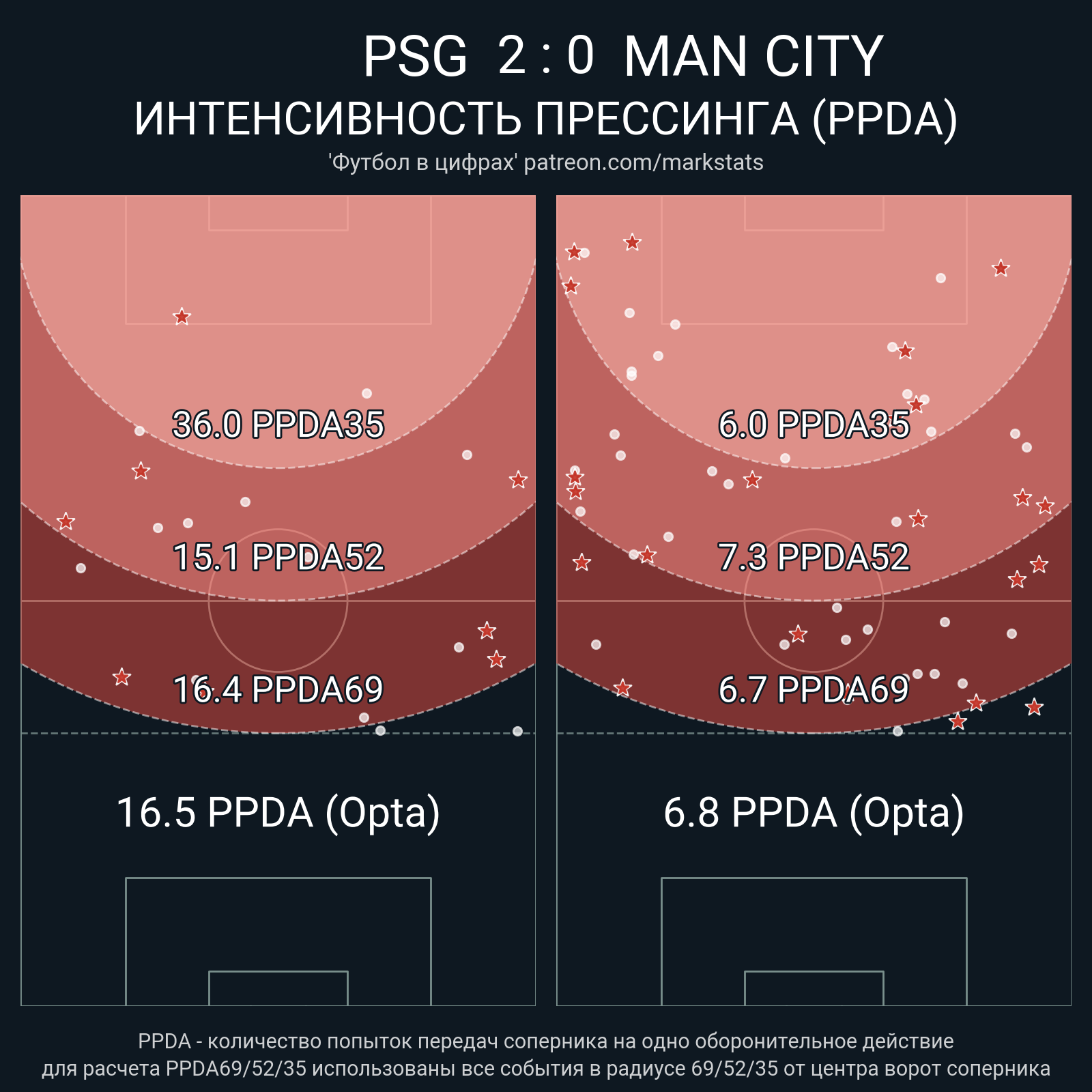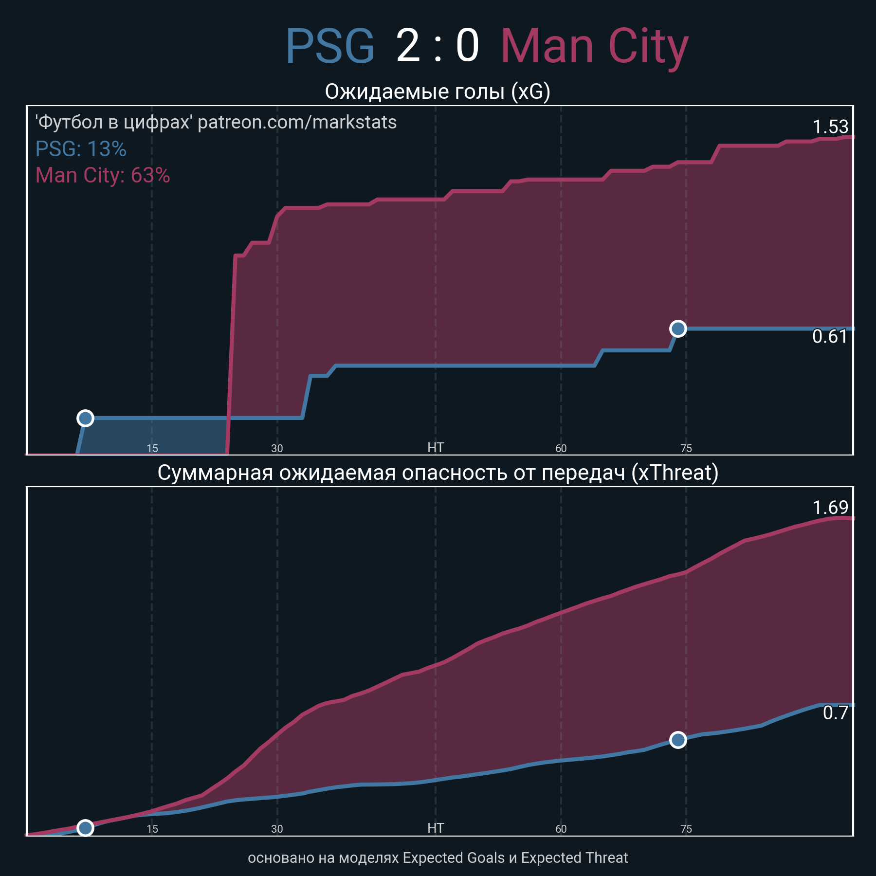Футбол в цифрахСтатистика матча PSG - Man City