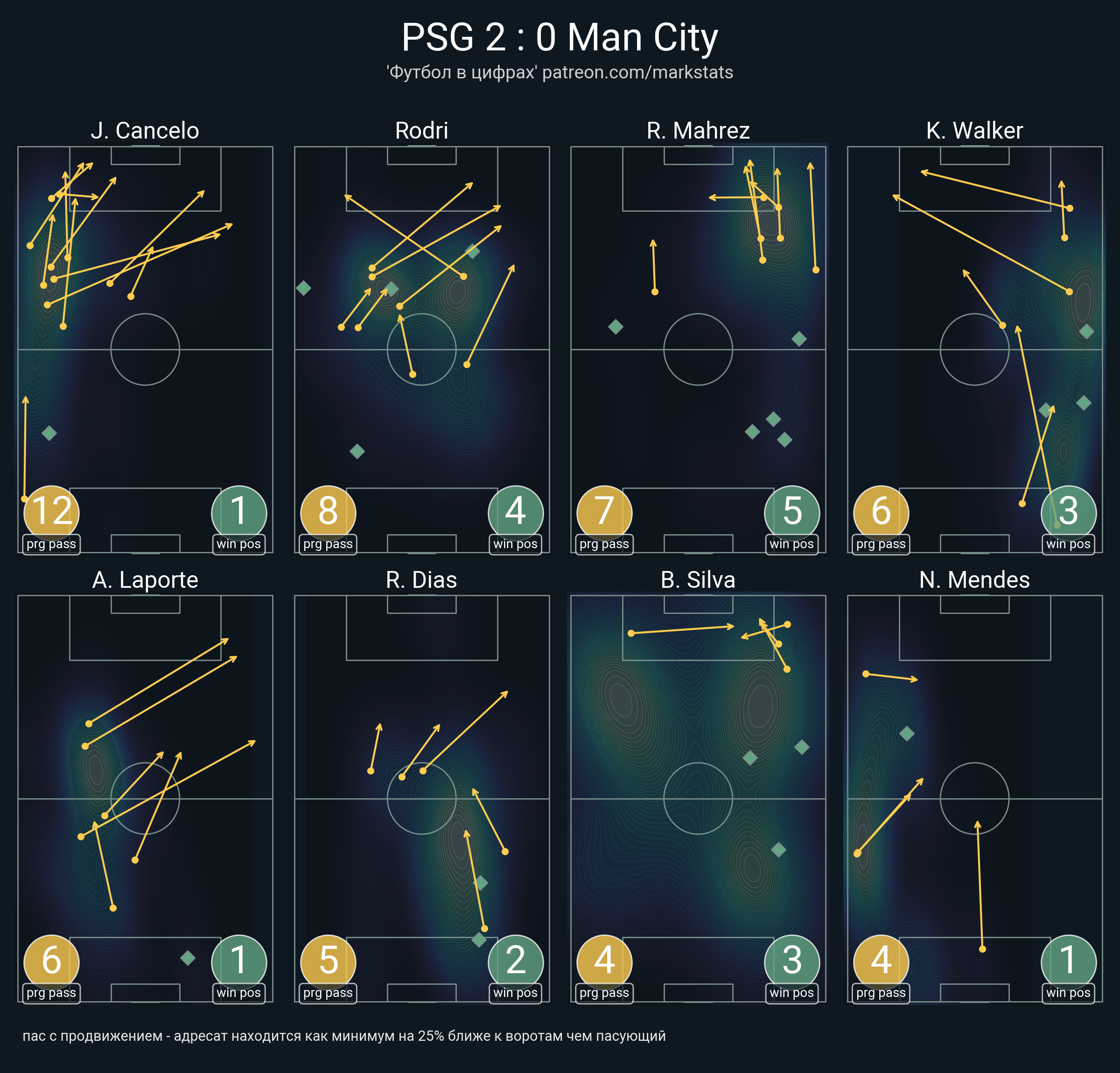 ▪ 50 успешных передач из 64 попыток (2 под удар, 7 с продвижением, 27 на трети соперника)