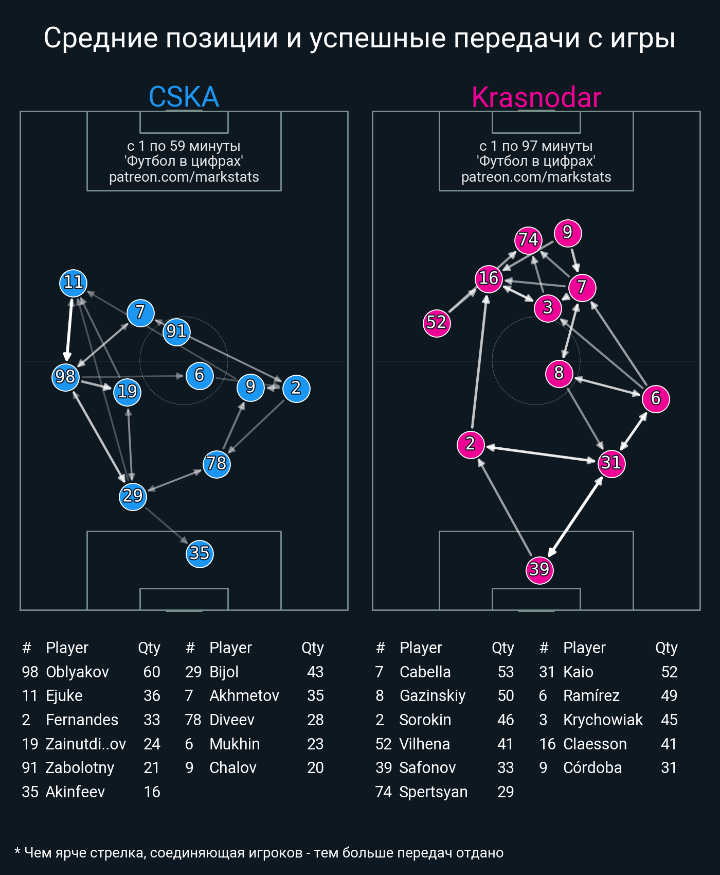 ▪ 47 успешных передач из 58 попыток (5 под удар, 10 с продвижением, 21 на трети соперника)