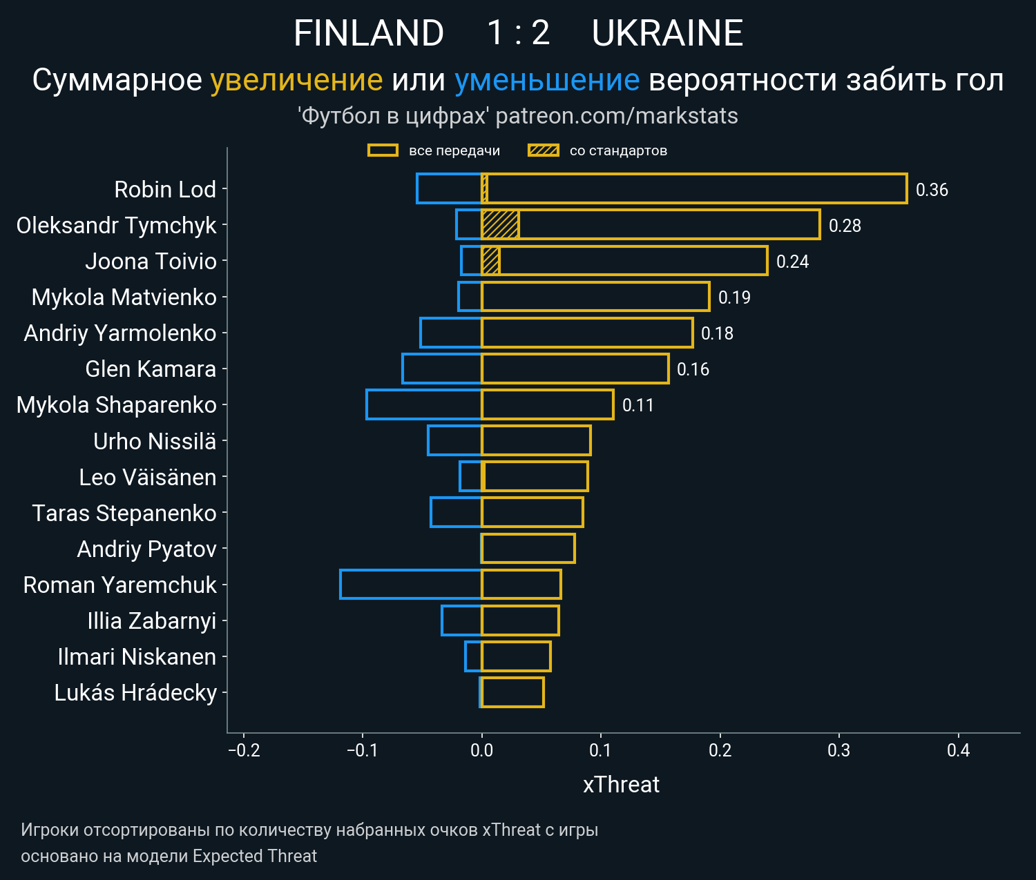 Очки xThreat с игры:
