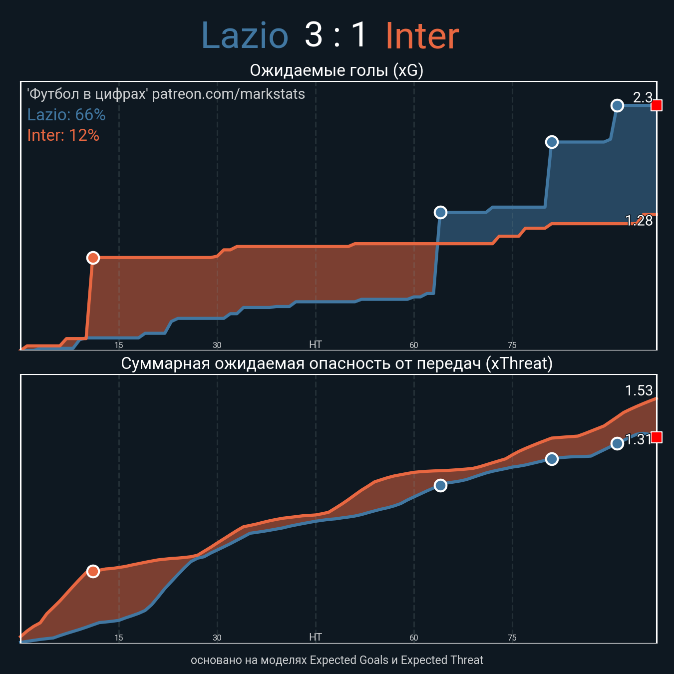 Футбол в цифрахСтатистика матча Lazio vs Inter