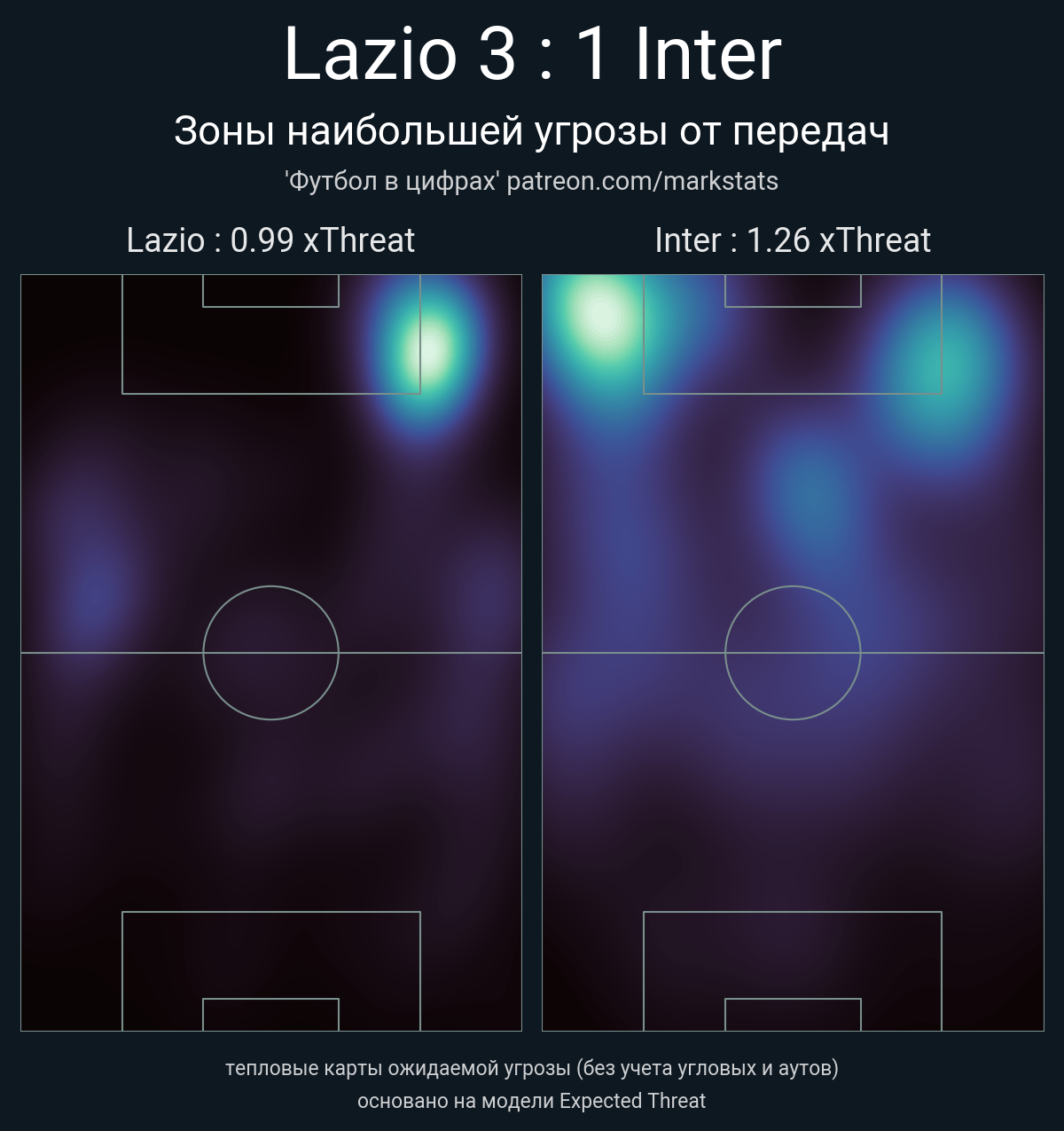 ▪ xThreat без учета угловых: 0.99 - 1.26