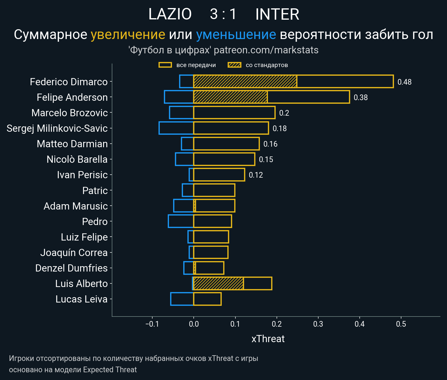 Очки xThreat с игры: