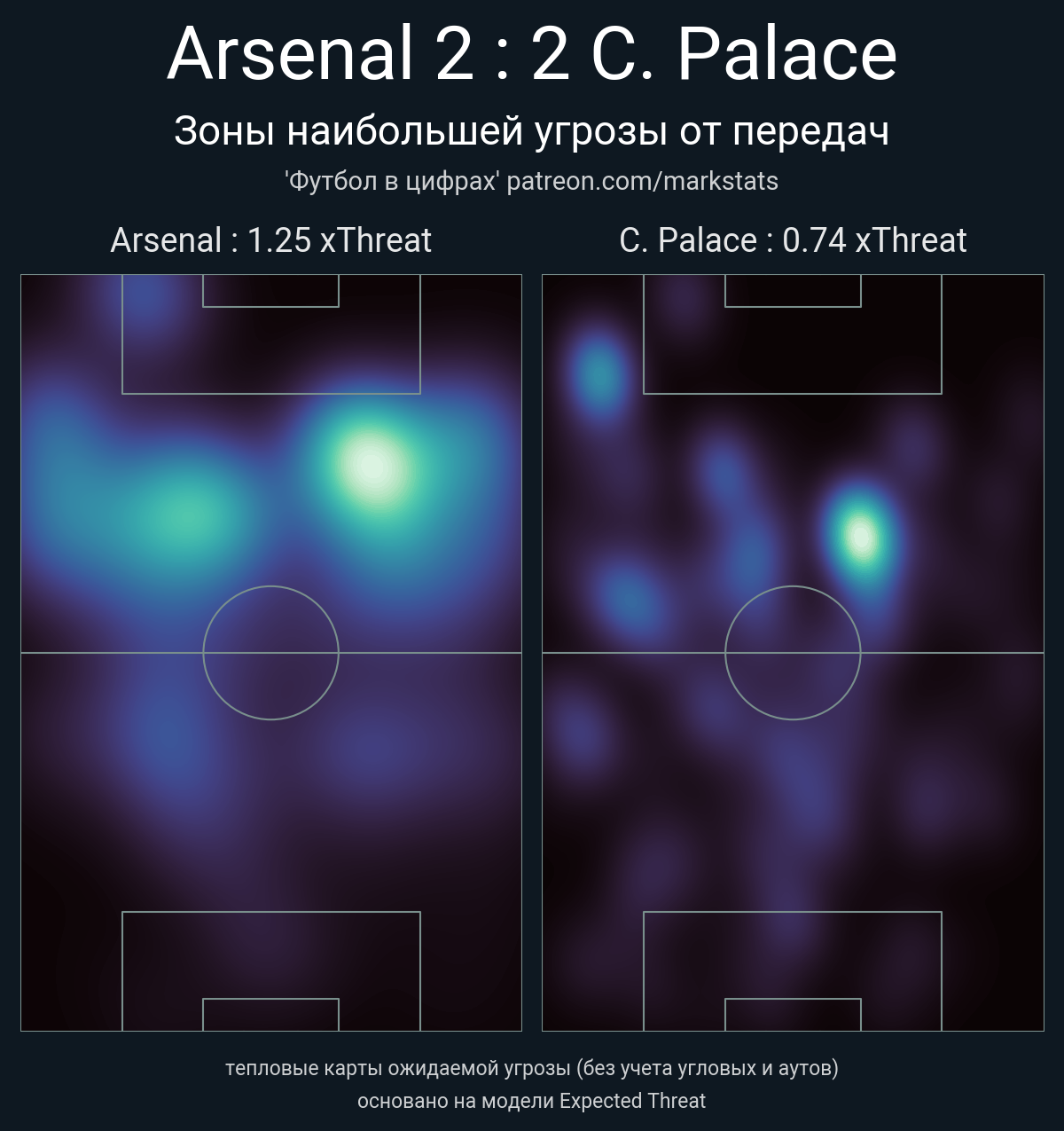 ▪ xThreat без учета угловых: 1.25 - 0.74