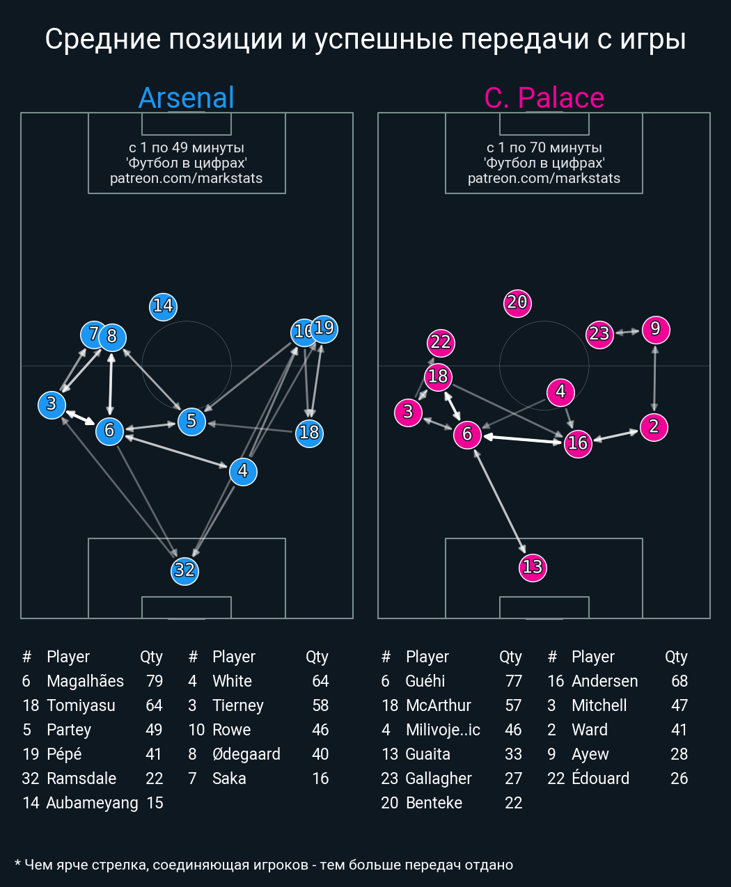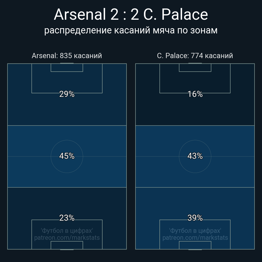 Футбол в цифрахСтатистика матча Arsenal vs. Crystal Palace