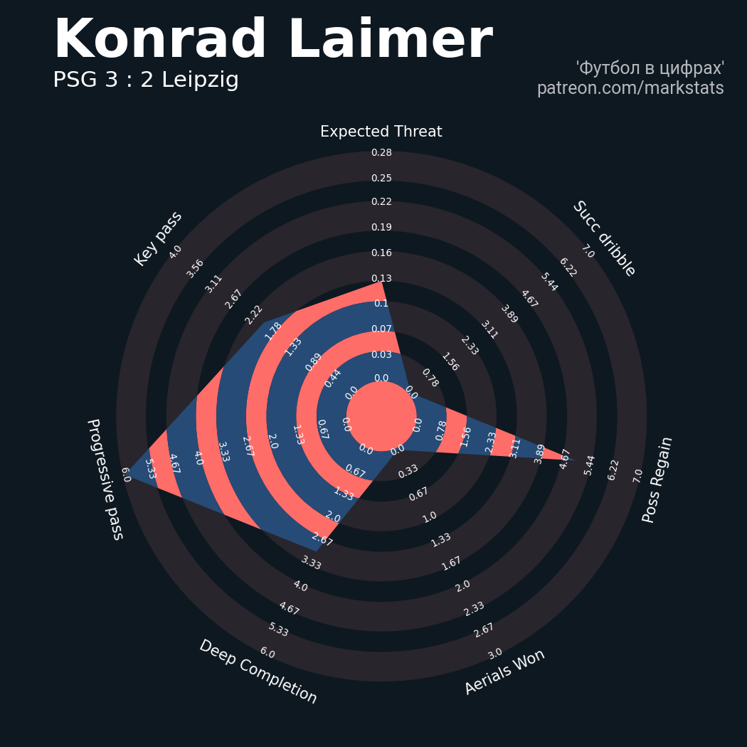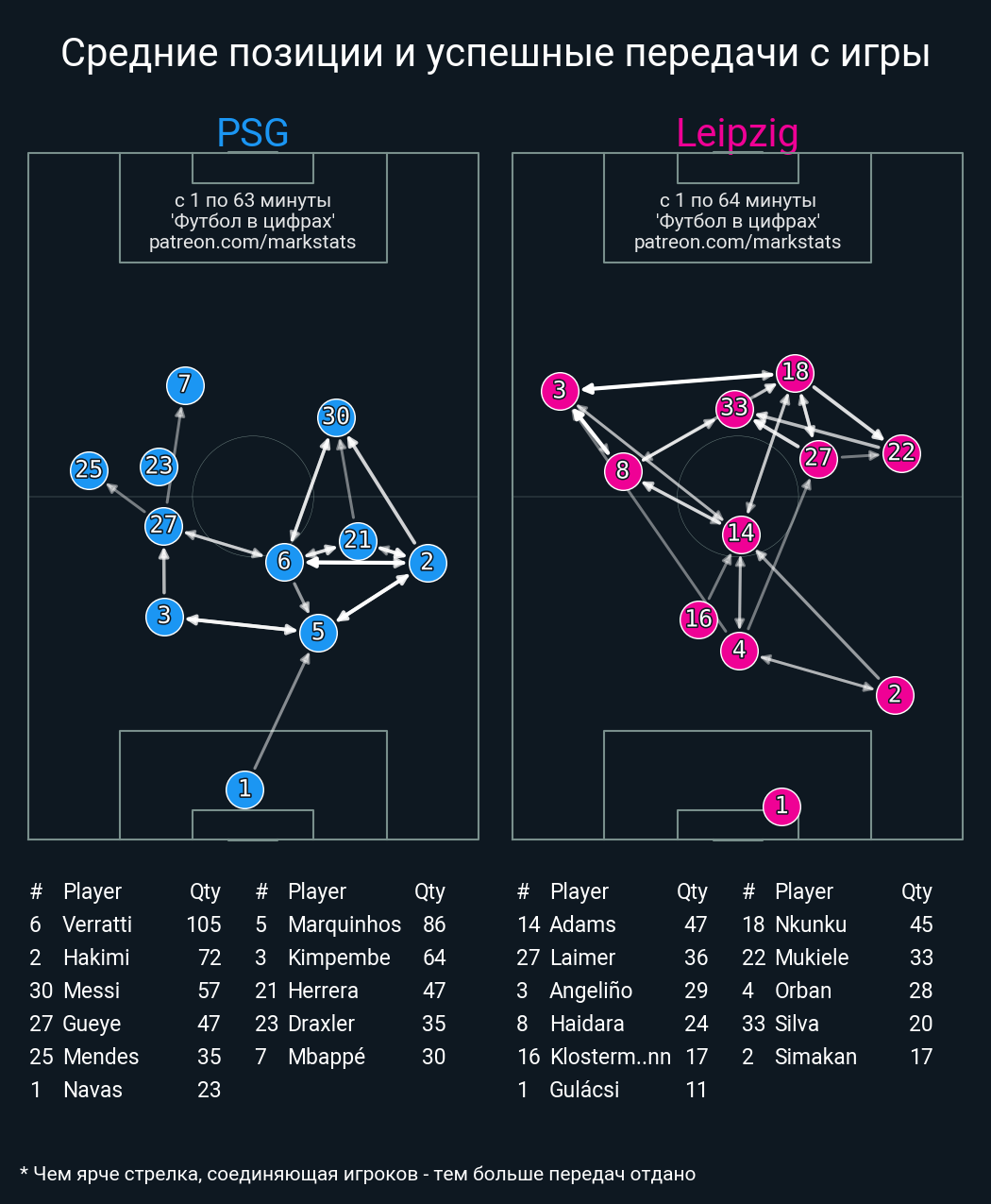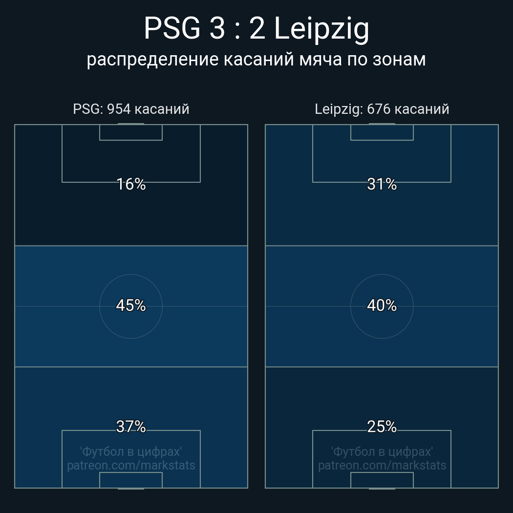 Футбол в цифрахСтатистика матча PSG vs RBL