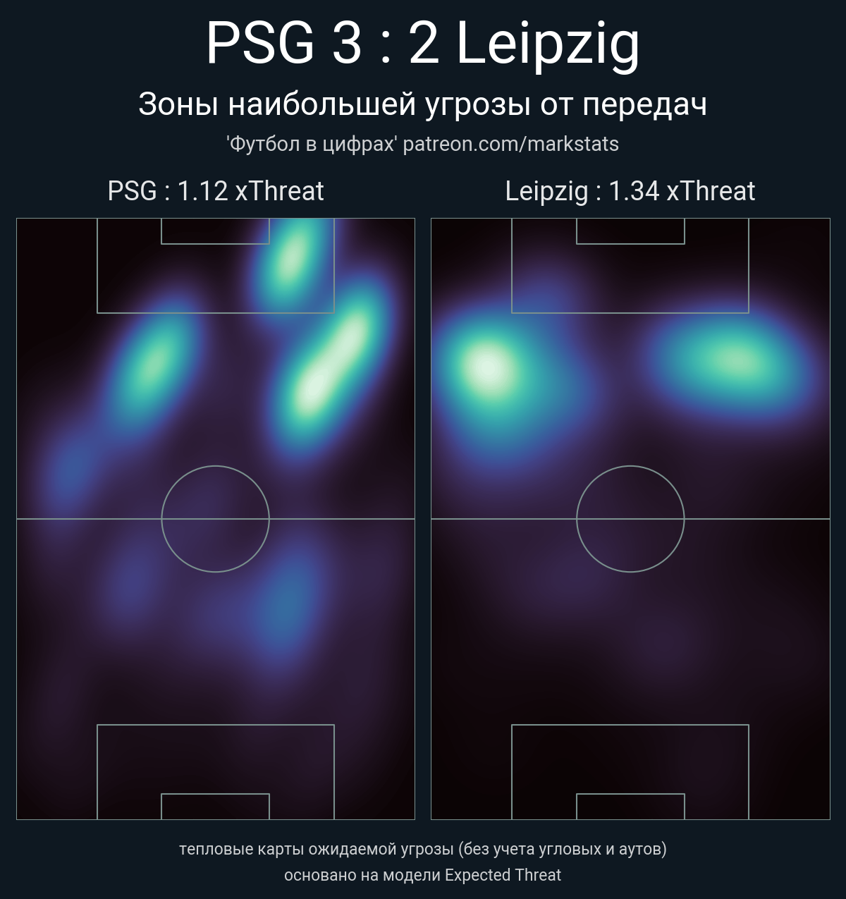 ▪ xThreat без учета угловых: 1.12 - 1.34