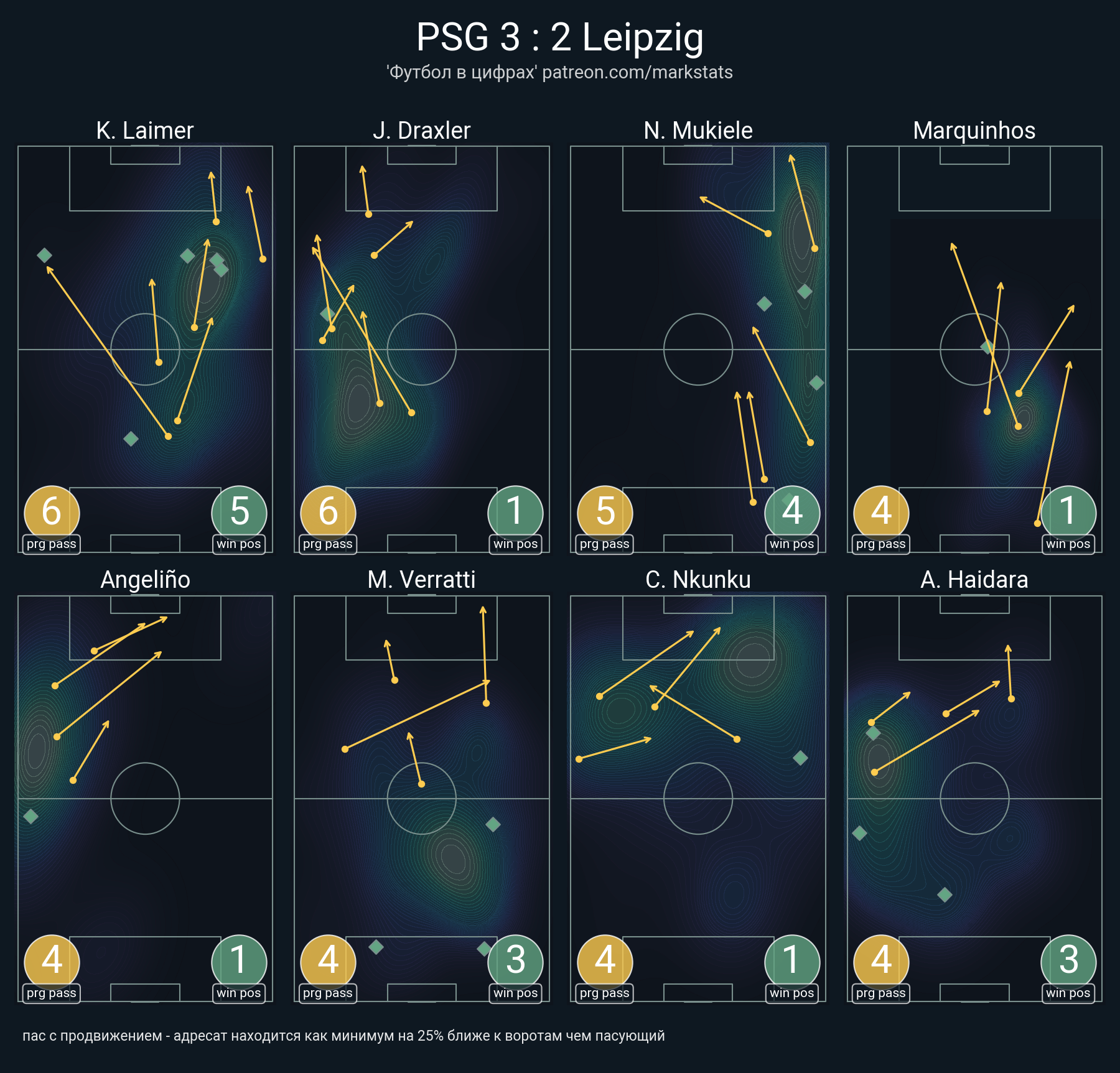 ▪ 21 успешных передач из 38 попыток (2 ассист, 4 под удар, 4 с продвижением, 7 на трети соперника)