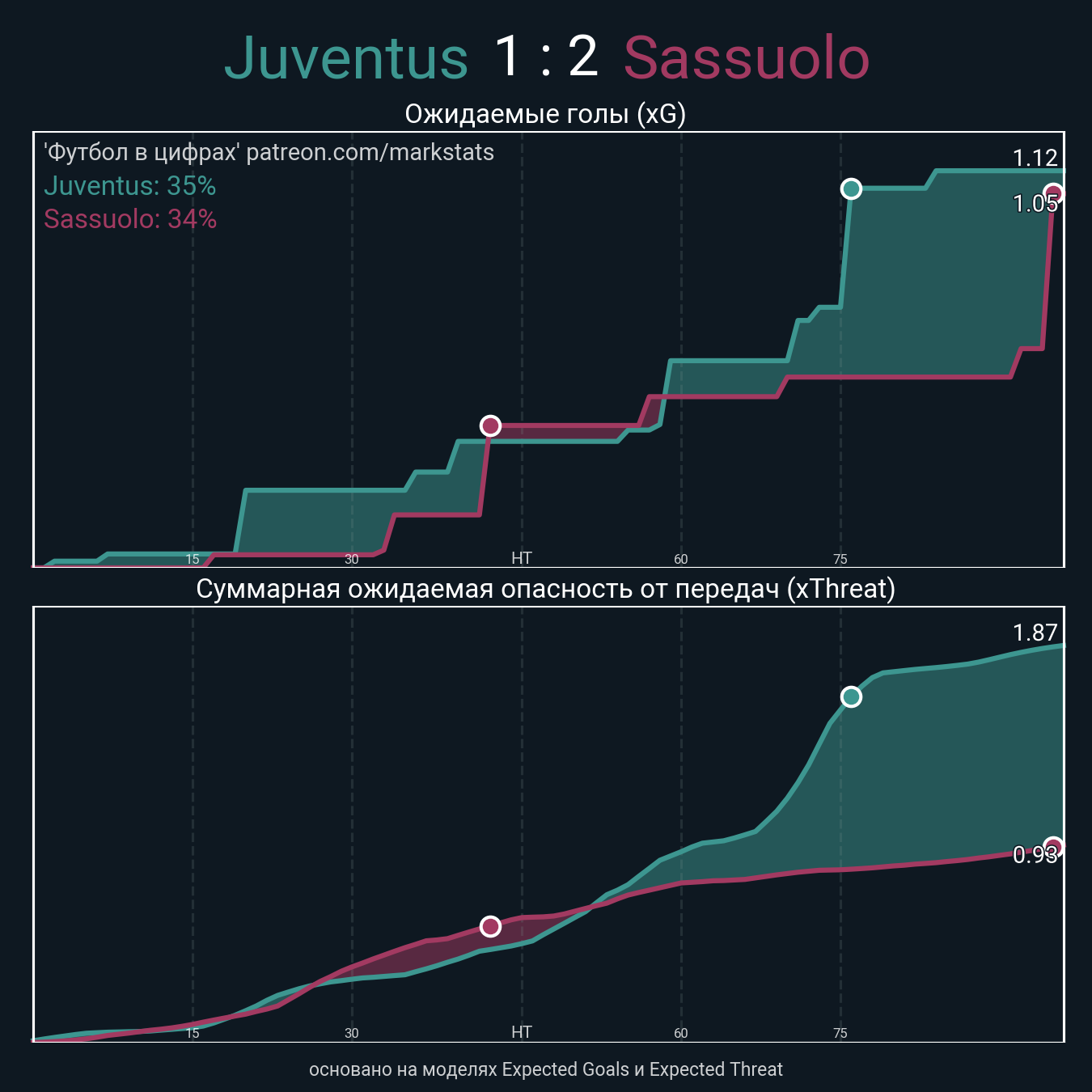 ▪ xThreat без учета угловых: 1.66 - 0.91