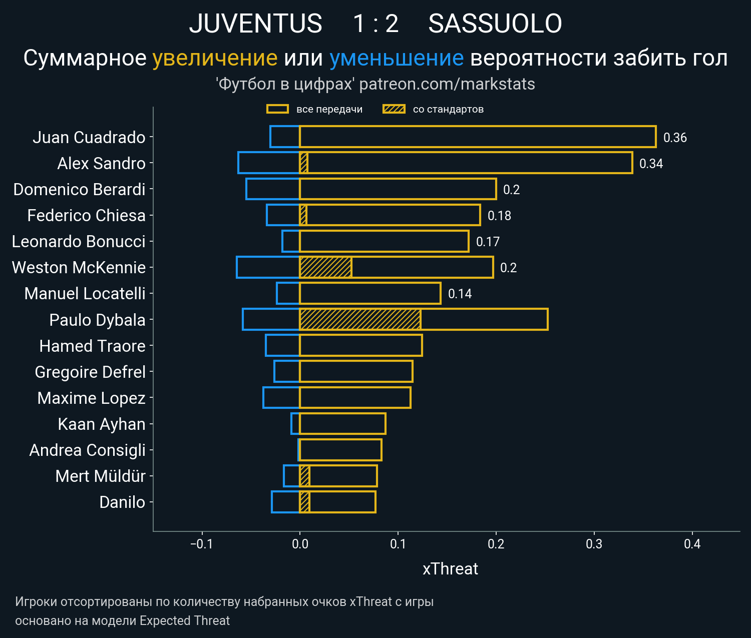 Очки xThreat с игры: