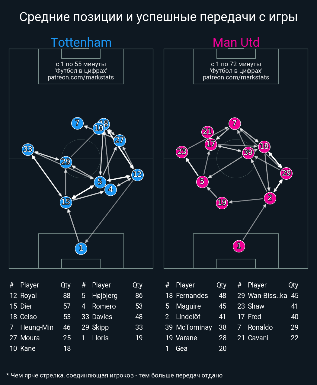 Футбол в цифрахСтатистика матча Tottenham vs. Man Utd