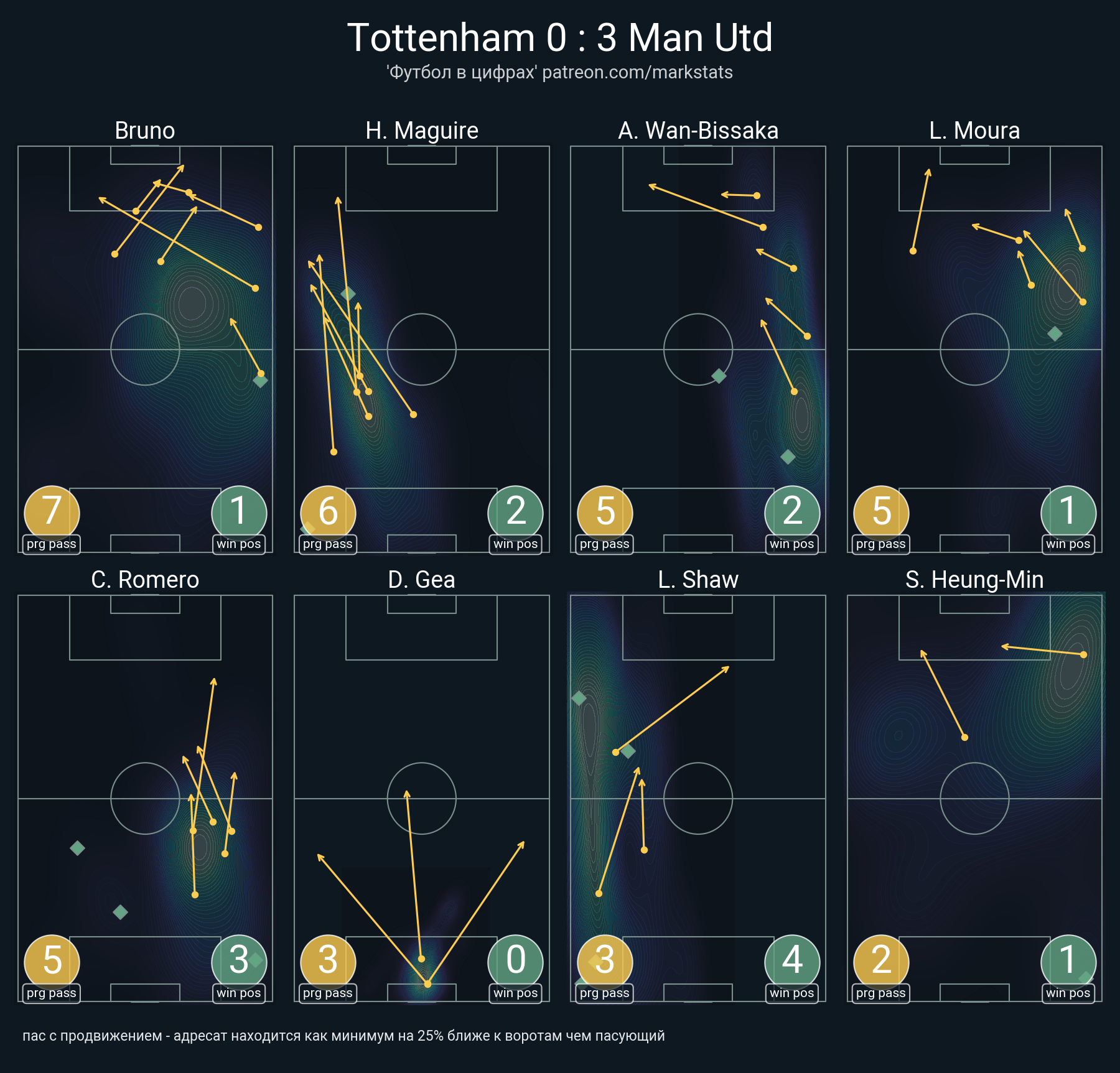 ▪ 20 успешных передач из 25 попыток (2 под удар, 5 с продвижением, 8 на трети соперника)