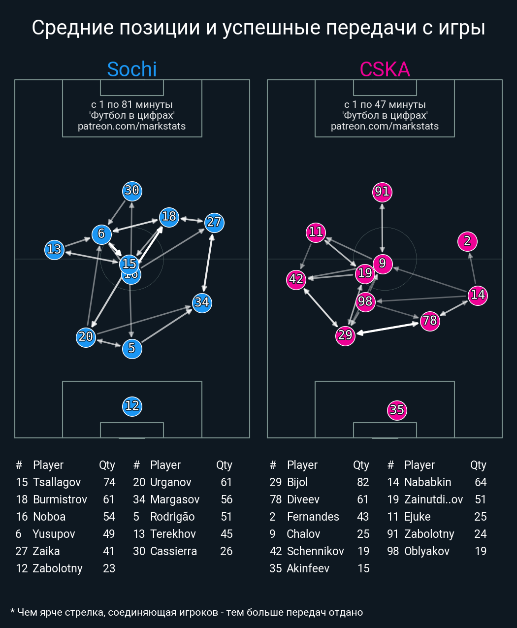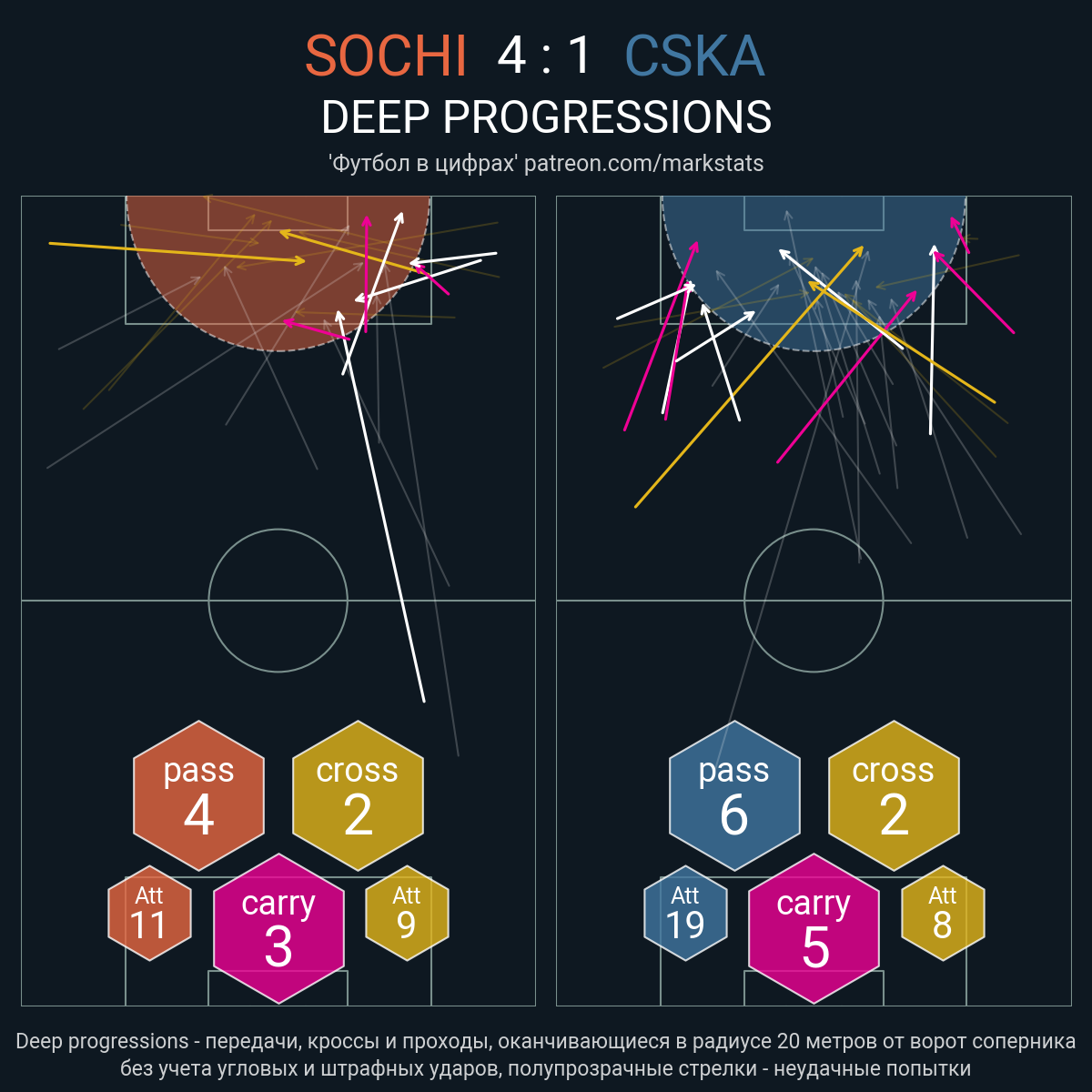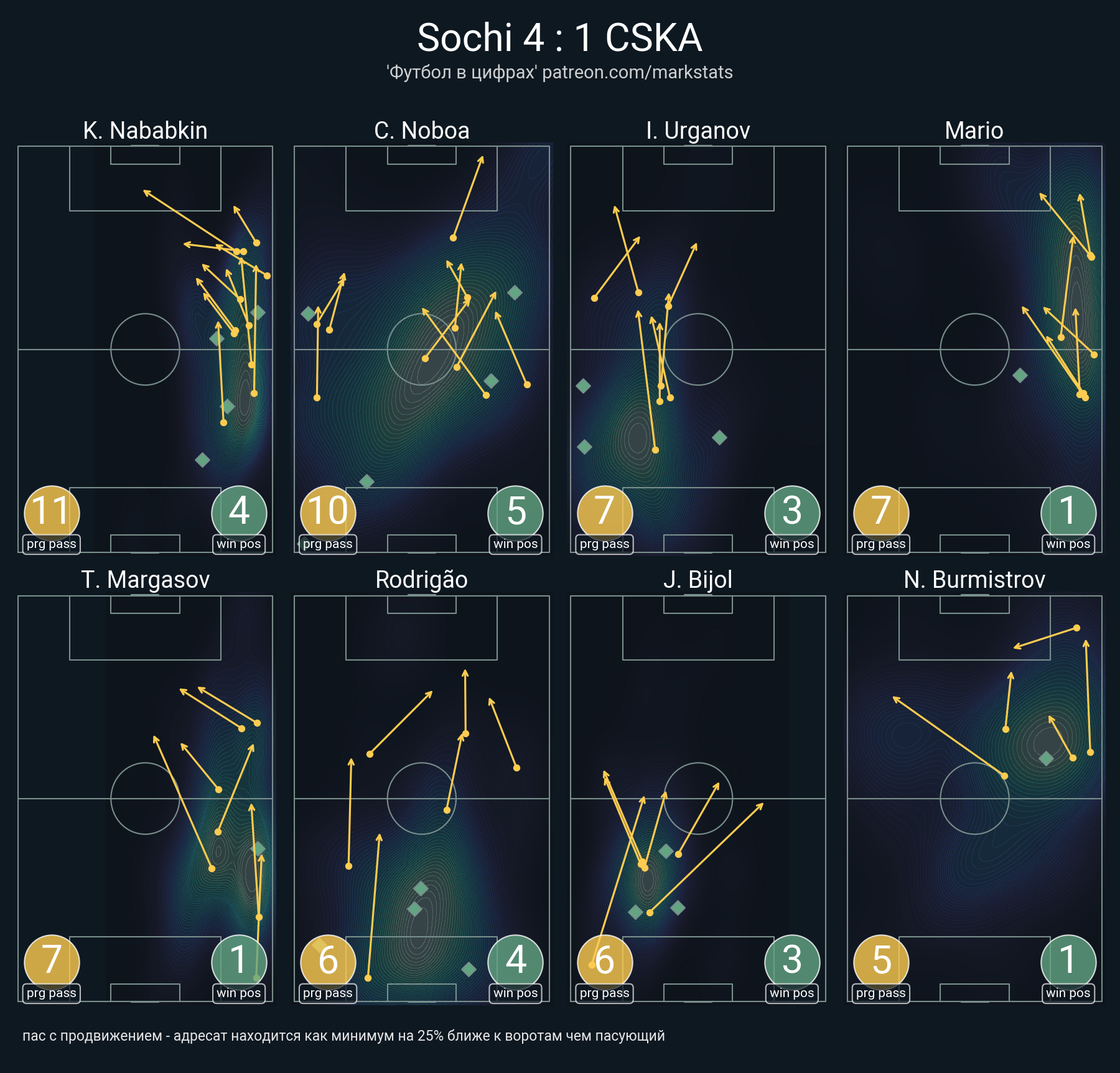▪ 21 успешных передач из 25 попыток (1 под удар, 3 с продвижением, 9 на трети соперника)