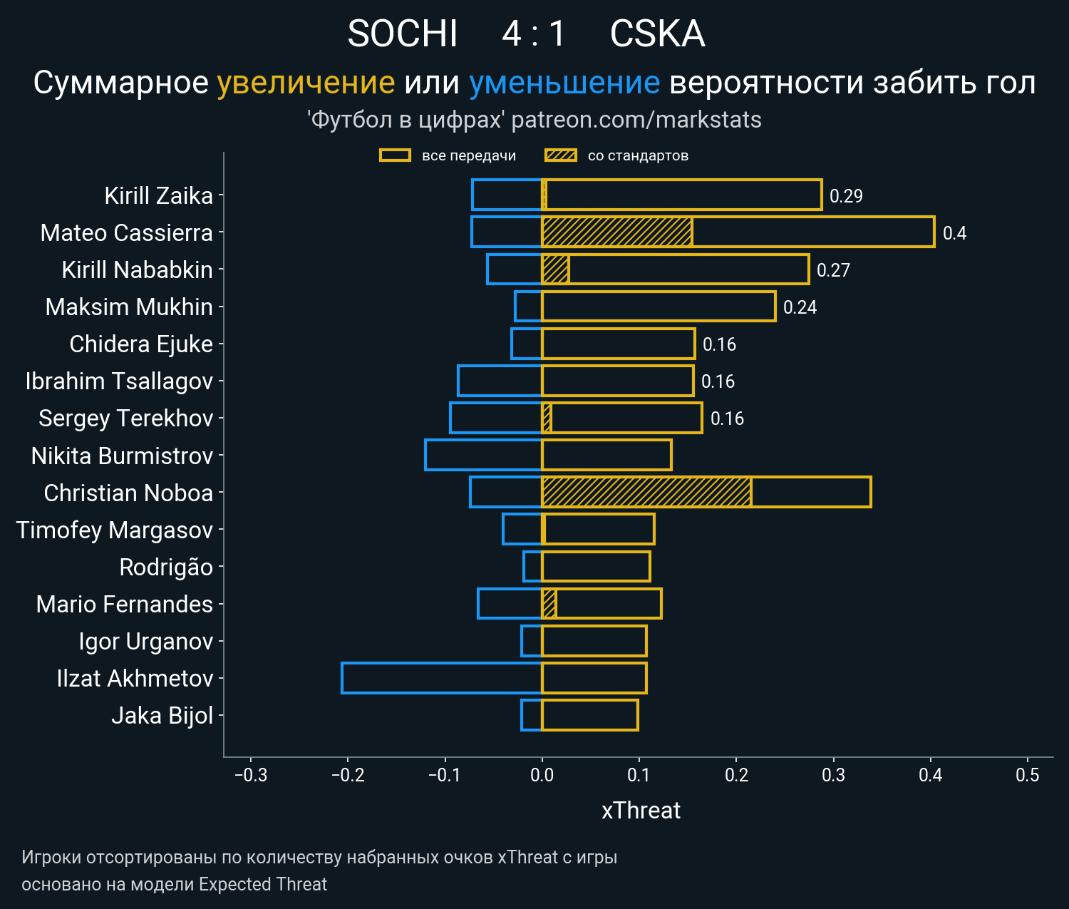 Очки xThreat с игры: