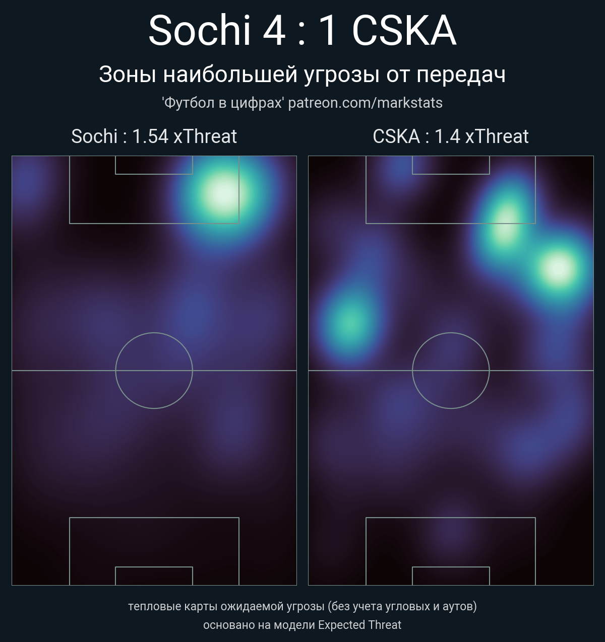 ▪ xThreat без учета угловых: 1.54 - 1.4