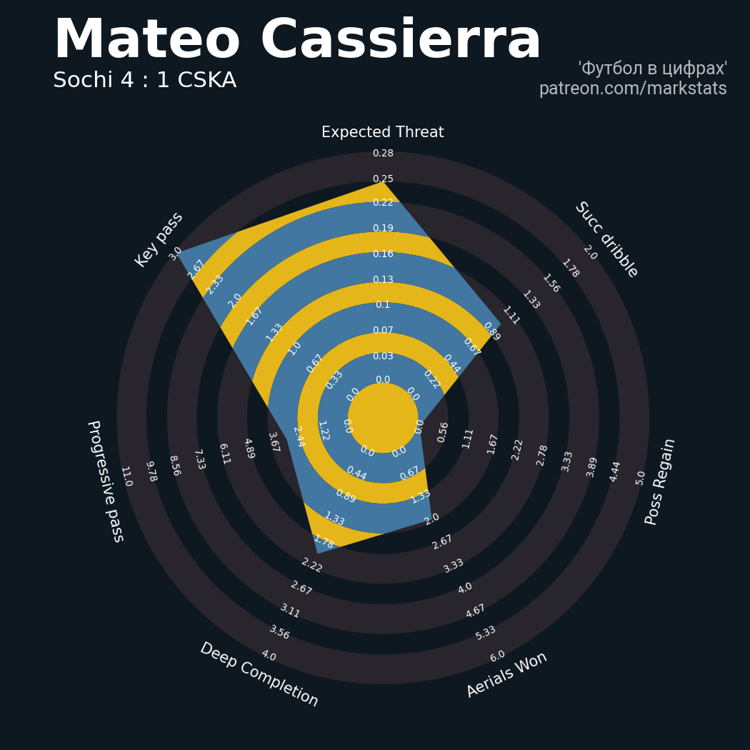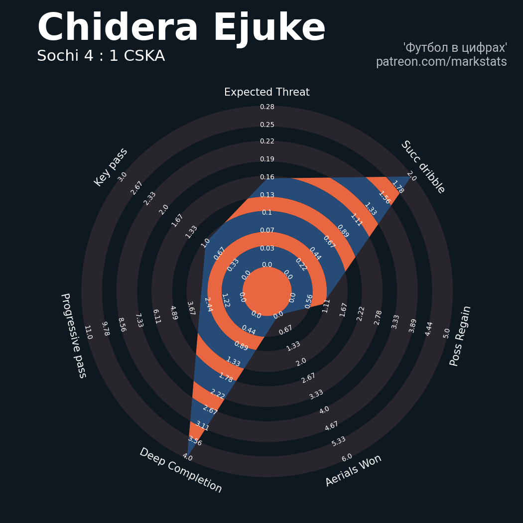 ▪ 0.12 очка xT (+0.22 со стандартов)
