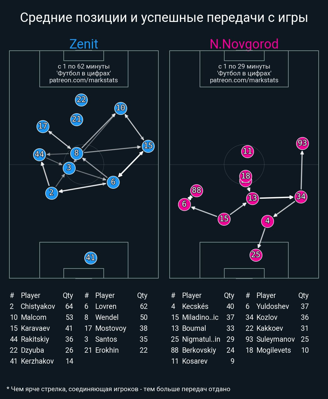 Футбол в цифрахСтатистика матча Zenit - Nizhny Novgorod