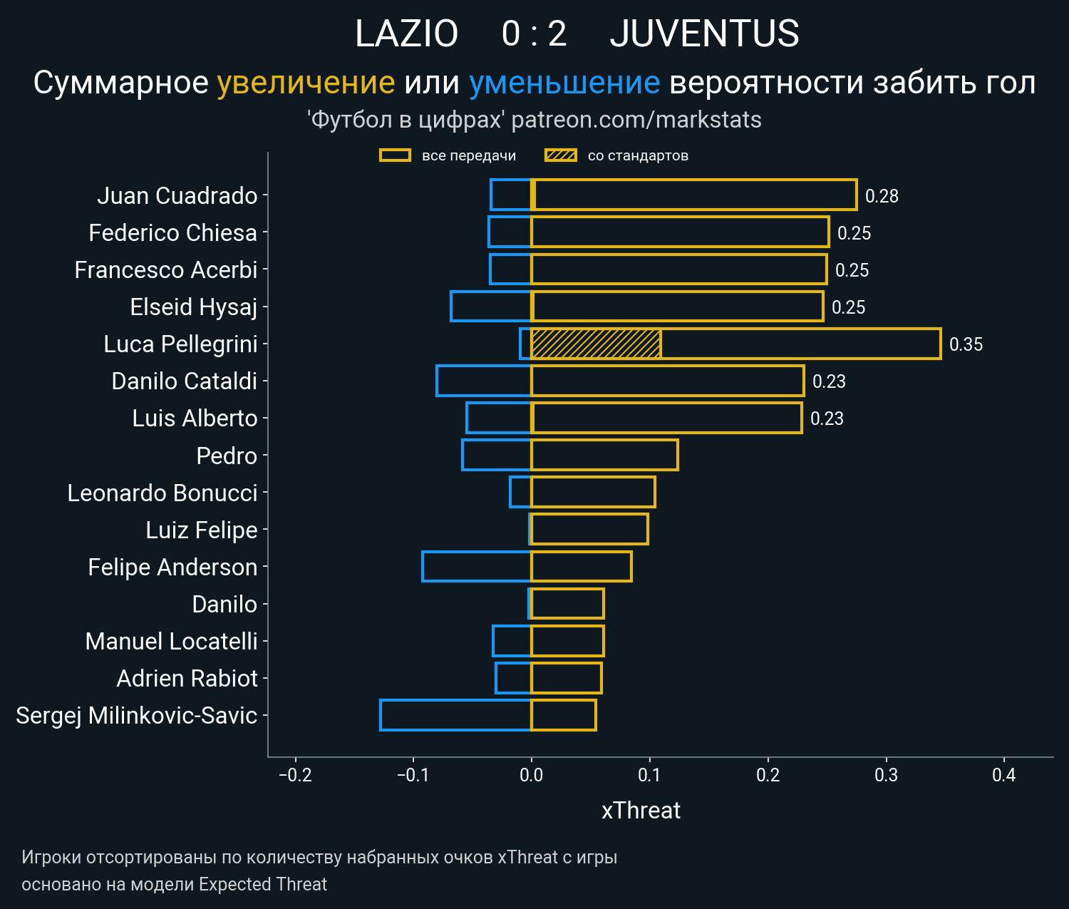 ▪ xThreat без учета угловых: 1.44 - 1.19