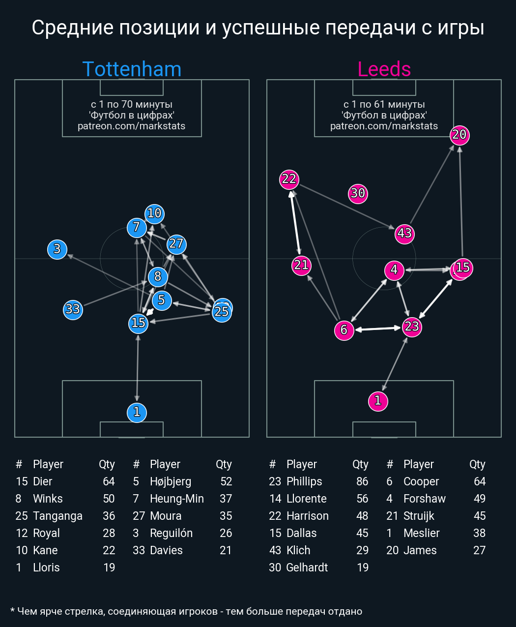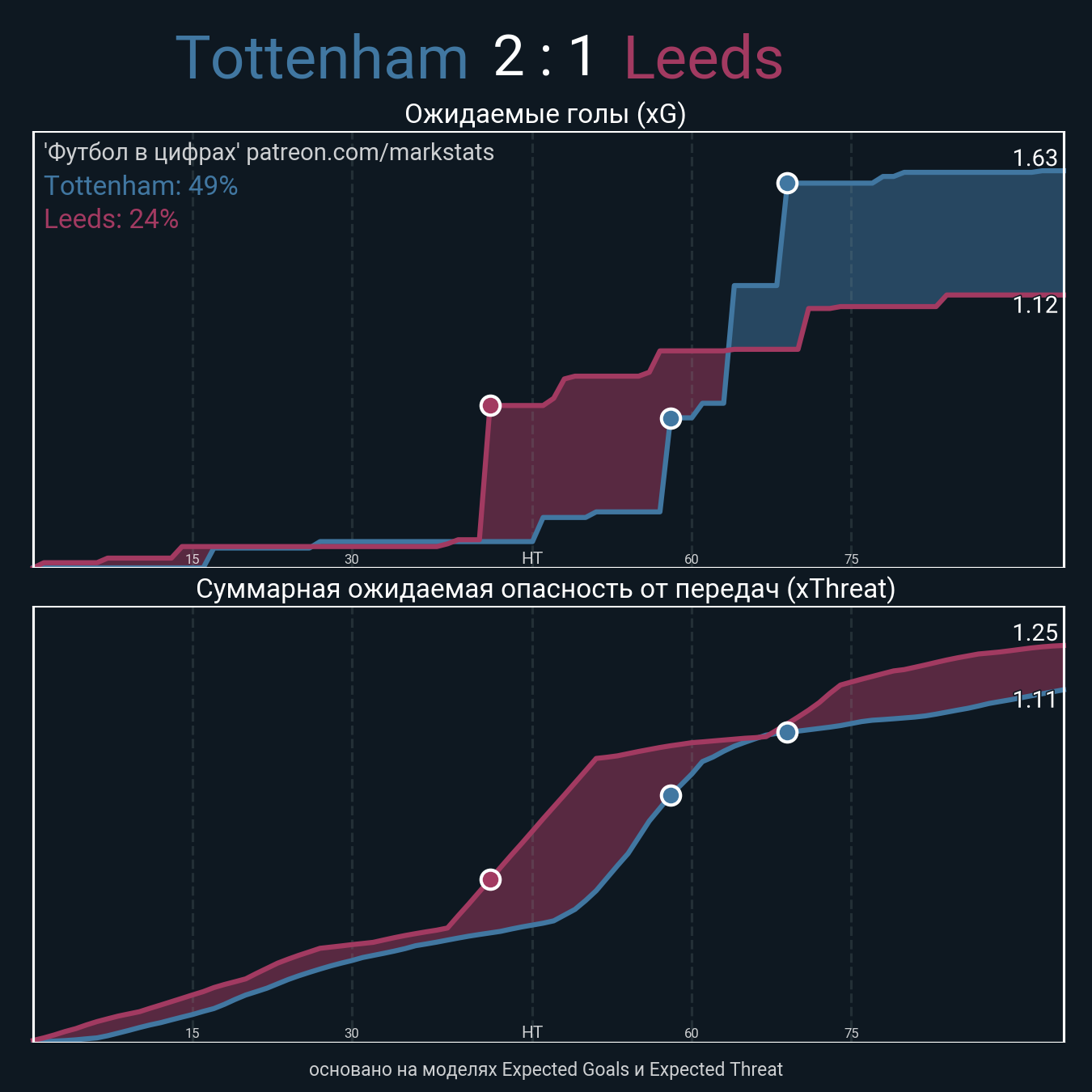 Футбол в цифрахСтатистика матча Tottenham vs Leeds