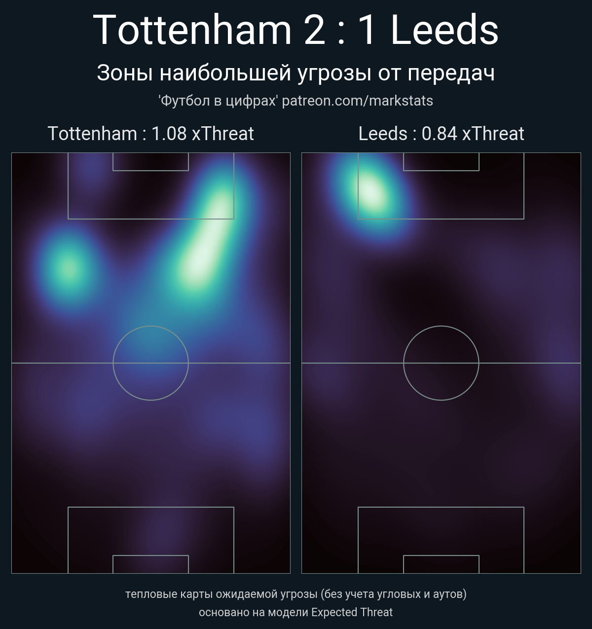 ▪ xThreat без учета угловых: 1.08 - 0.84