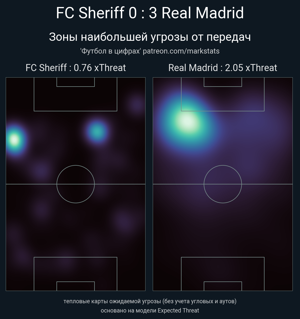 ▪ xThreat без учета угловых: 0.76 - 2.05