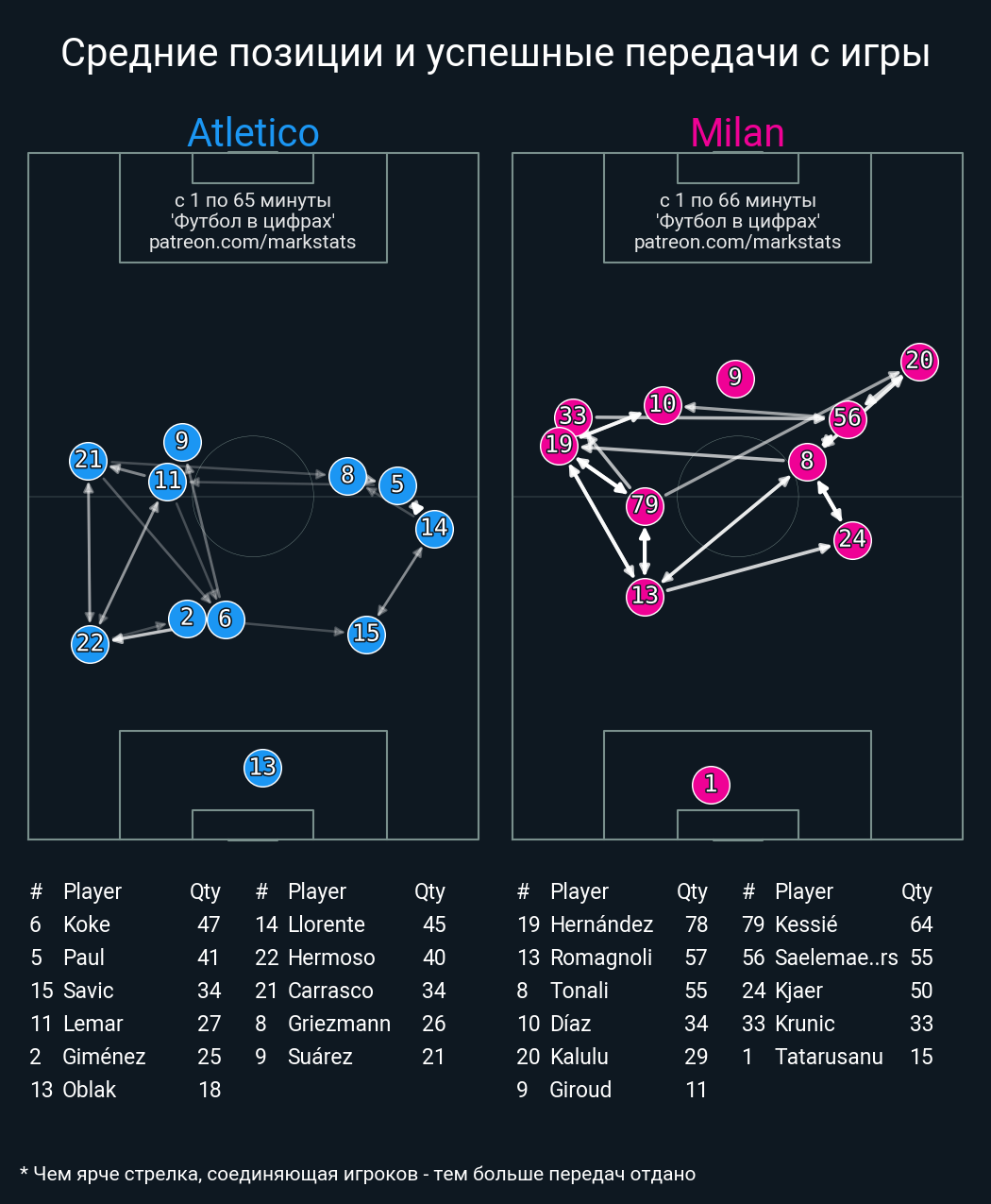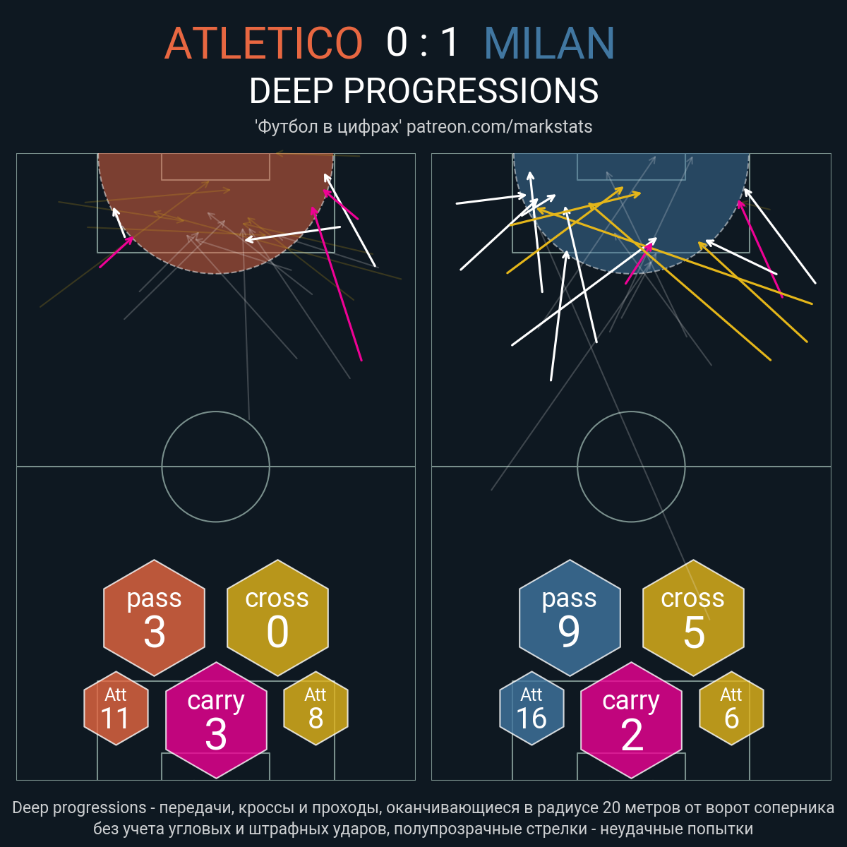 Футбол в цифрахСтатистика матча Atletico - AC Milan